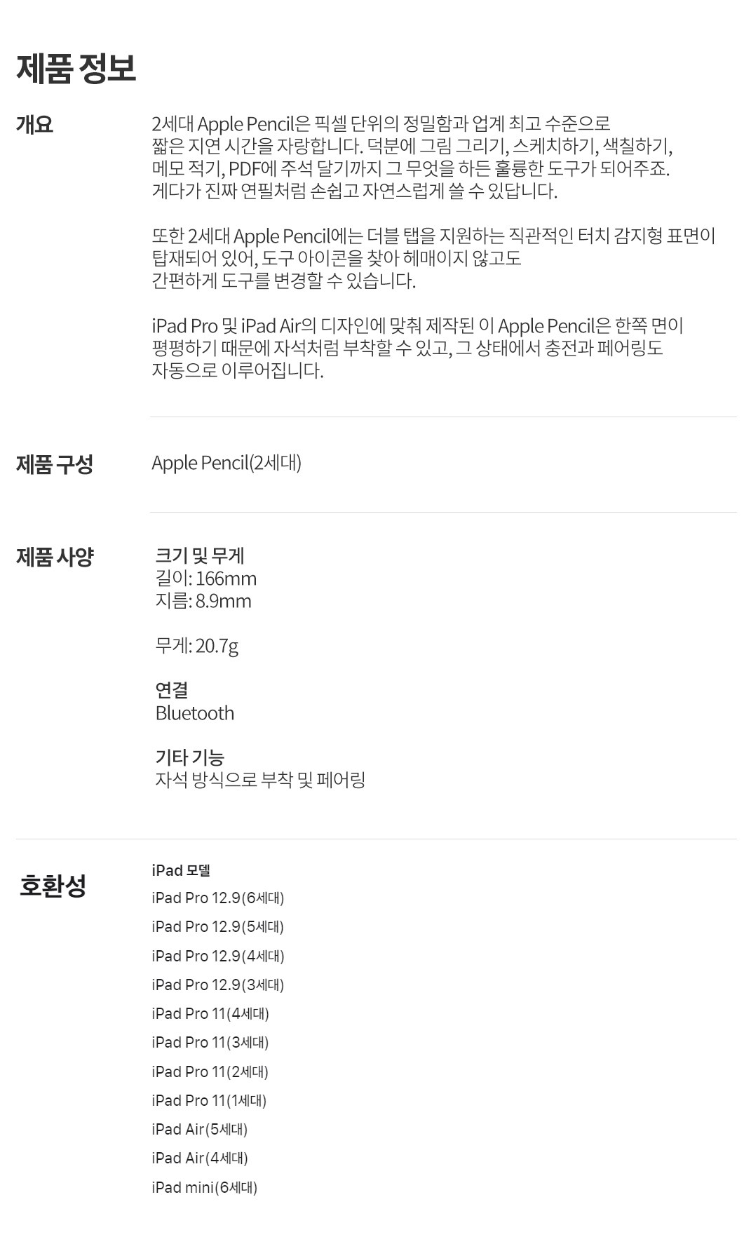 | 품명 및 모델명 | Apple Pencil (2세대) MU8F2KH/A / A2051 | 인증/허가 사항 | R-C-APL-A2051 |