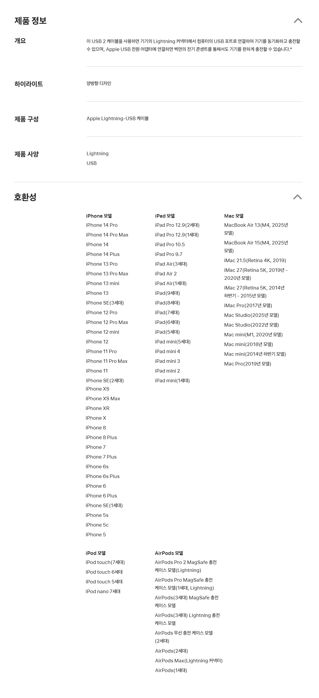 | 품명 및 모델명 | Apple 정품 Lightning to USB 케이블 (1m) (MUQW3FE/A) | 인증/허가 사항 | 해당없음 |