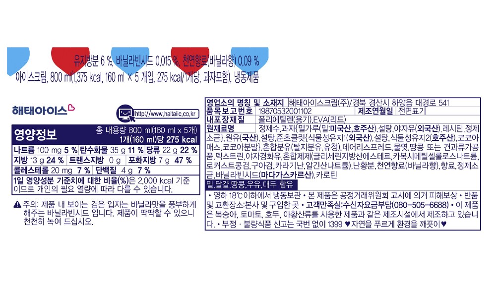 | 제품명 | 부라보 바닐라 | 식품의 유형 | 컨텐츠 참조 |