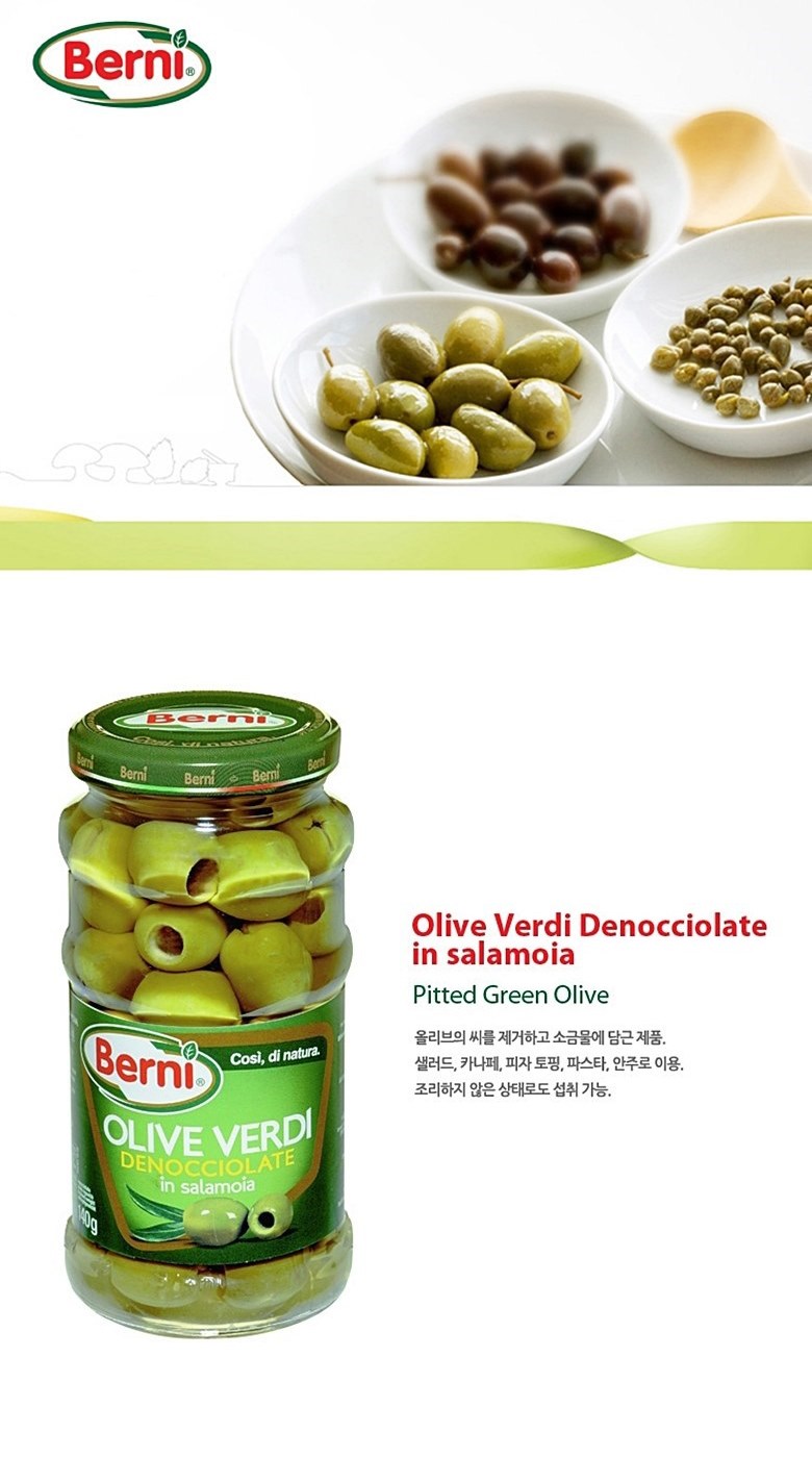| 제품명 | 베르니 피티드 그린올리브(그린올리브48%함유) | 식품의 유형 | 절임류(살균제품) |
