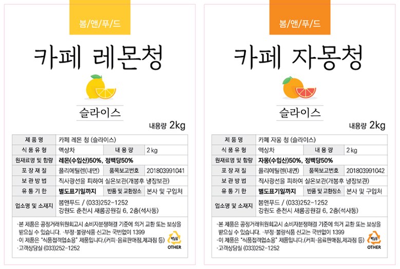 카페자몽청은 허가받은 시설에서 만들어 안심하고 이용하셔도 됩니다.