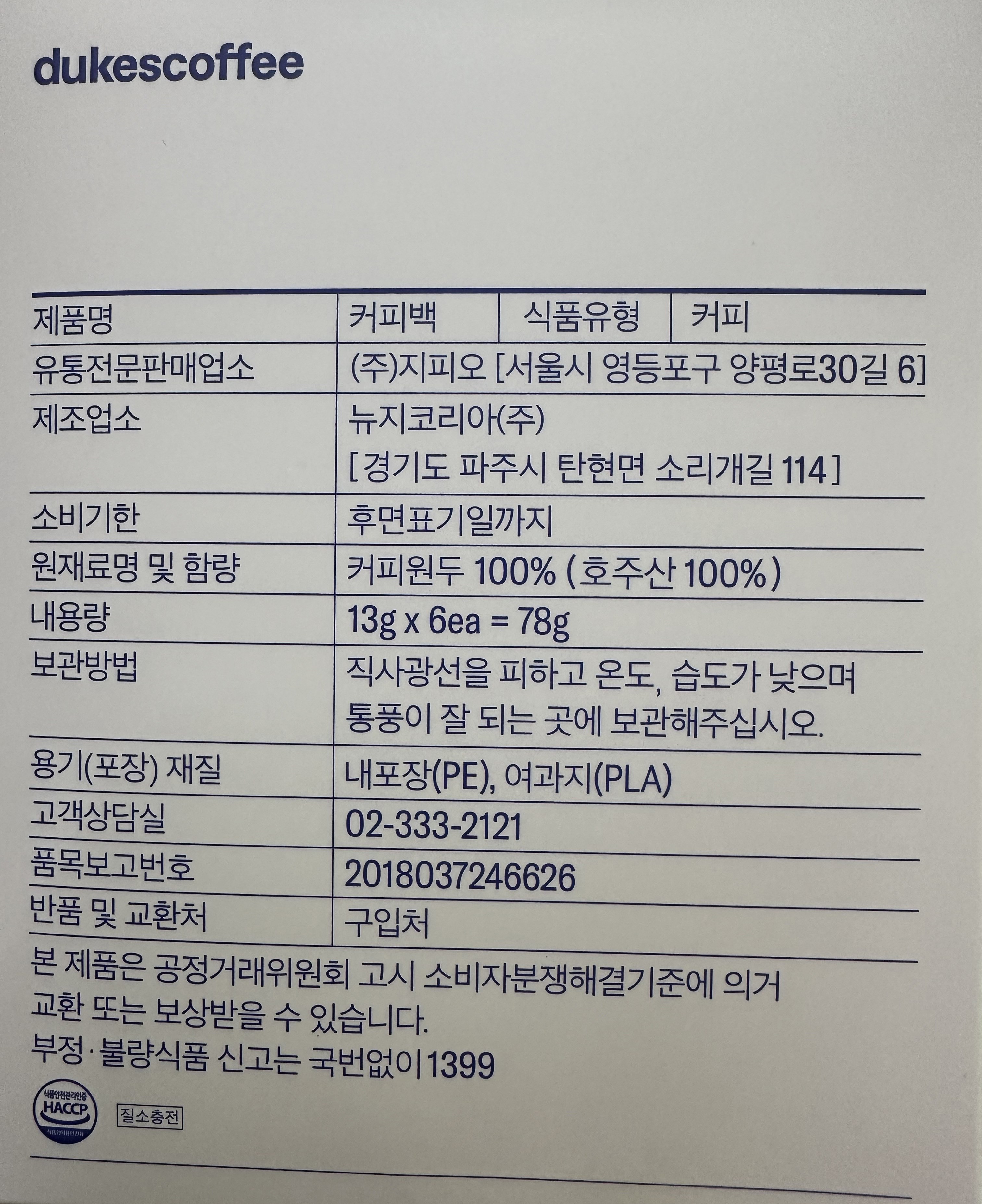 | 생산자 및 소재지 | 컨텐츠 참조 | 제조연월일, 소비기한 또는 품질유지기한 | 업데이트 예정 |
