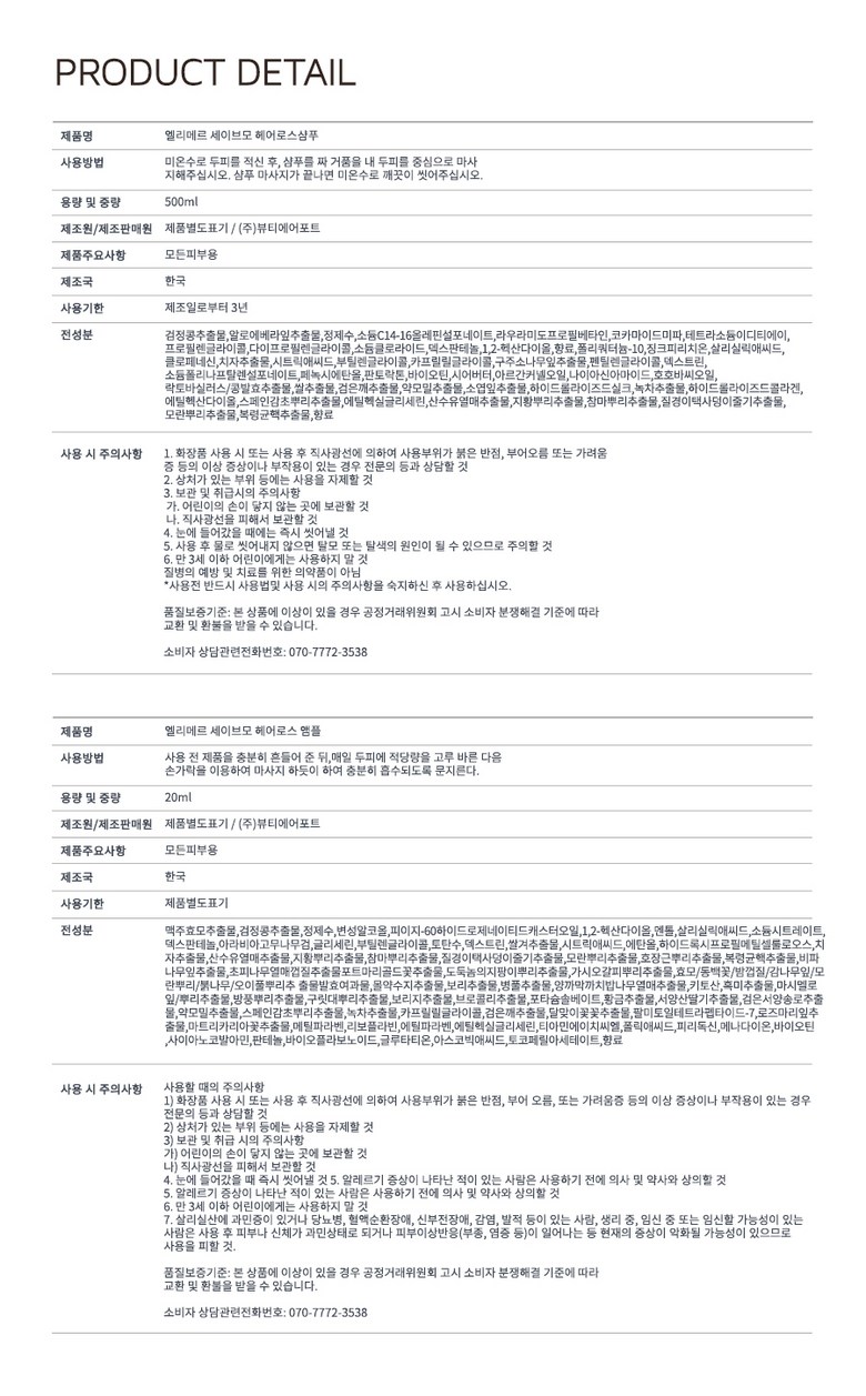 | 용량(중량) | 500ml | 제품 주요 사양 | 모든피부용 |