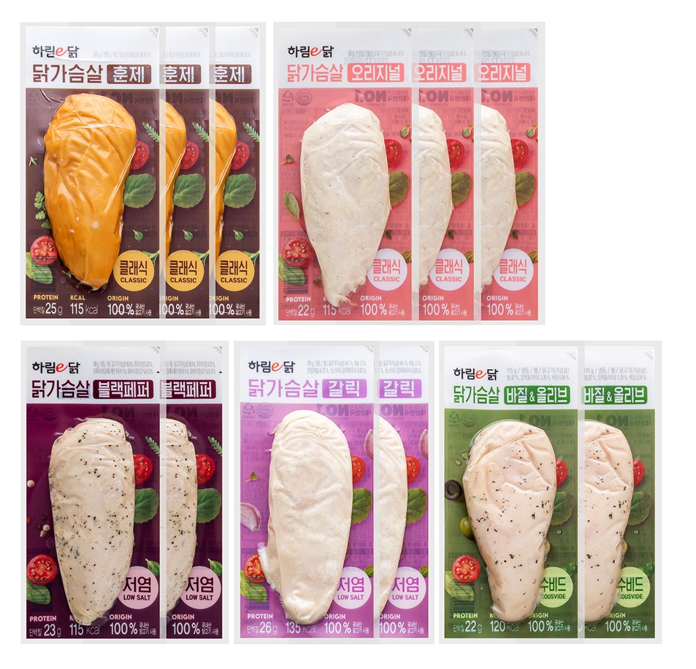 촉촉하고 부드러운 육질을 자랑하는 닭가슴살이에요. 오리지널, 훈제, 갈릭, 블랙페퍼, 수비드 바질&올리브로 구성되어 있어 골라 먹는 재미가 쏠쏠하지요. 전자레인지로 간편하게 조리해 즐겨보세요. 그냥 드셔도 맛있고, 샐러드의 토핑으로 활용하셔도 좋아요.