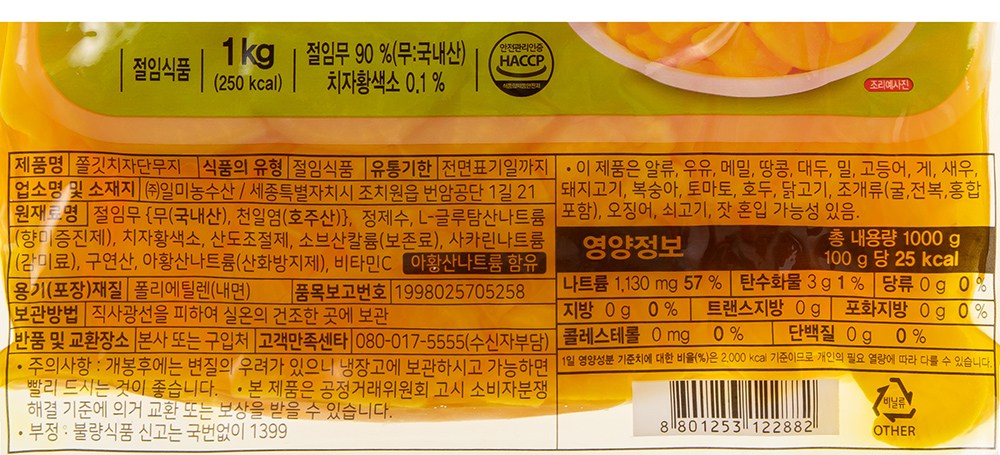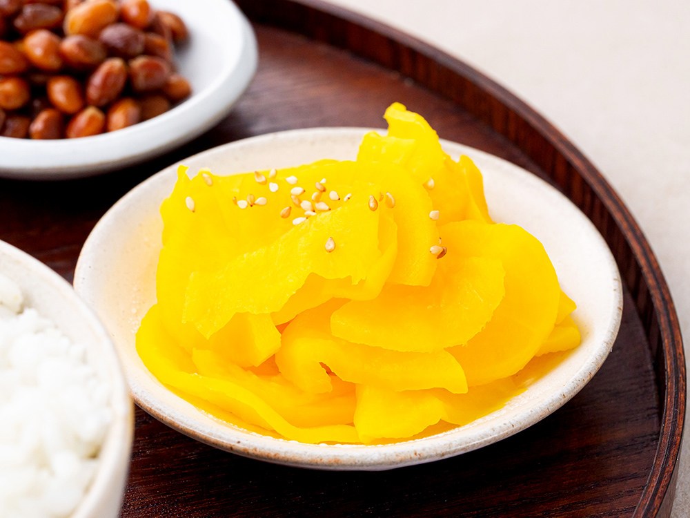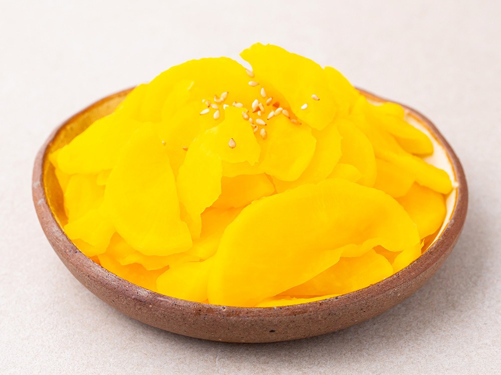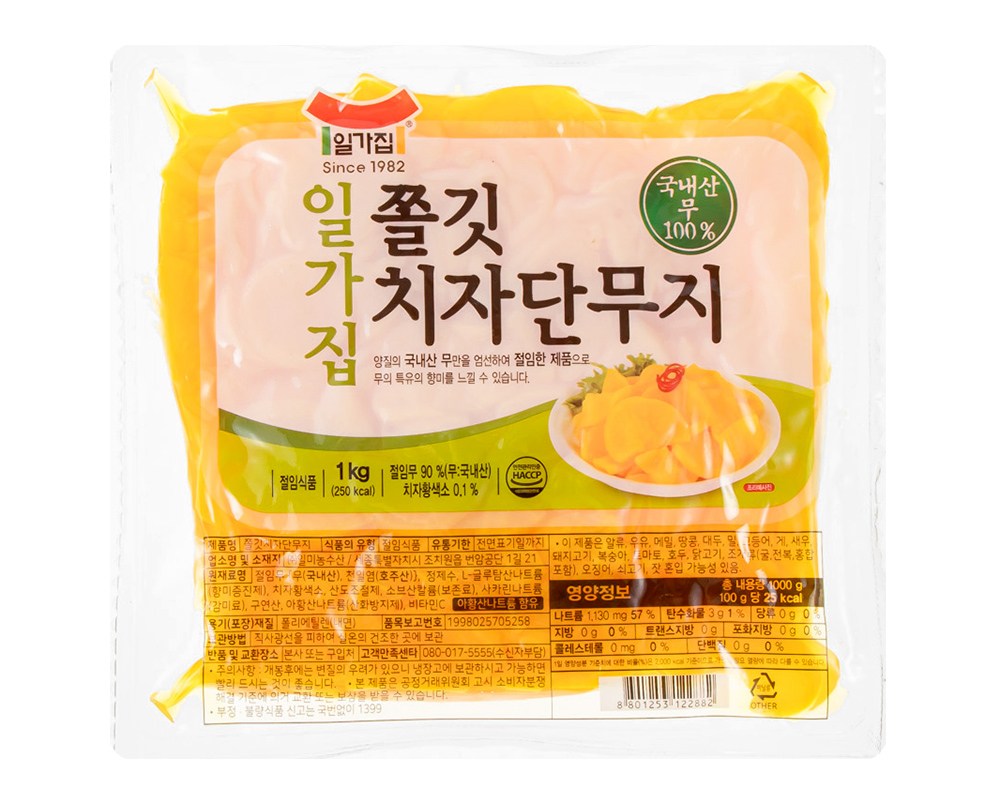 아삭아삭한 식감과 달큼한 맛으로 입맛을 사로잡는 단무지는 만두나 김밥, 라면을 먹을 때 빠지지 않는 반찬이에요. 아삭한 식감으로 재미를 줄 뿐 아니라 달큼한 맛과 상큼한 맛 모두를 전해주지요. 일가집 쫄깃 치자 단무지는 오도독 쫄깃한 식감으로 씹는 재미를 더해주어 무침이나 장아찌 등 맛있는 밑반찬으로 변신하기 좋아요. 간편하게 먹기 좋은 밑반찬 거리를 찾고 계시다면 일가집 쫄깃 치자 단무지를 만나보세요.
