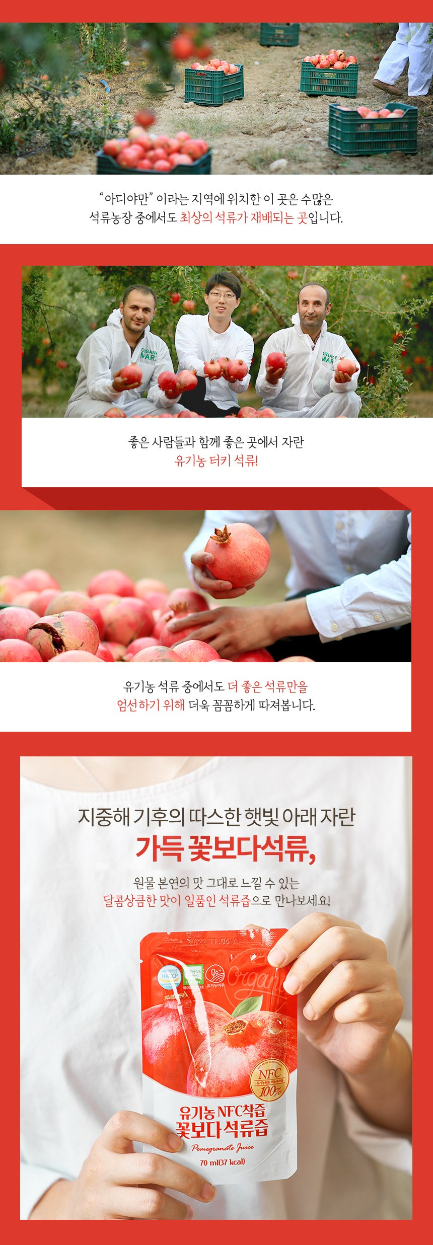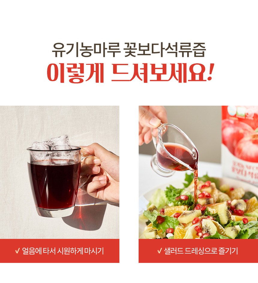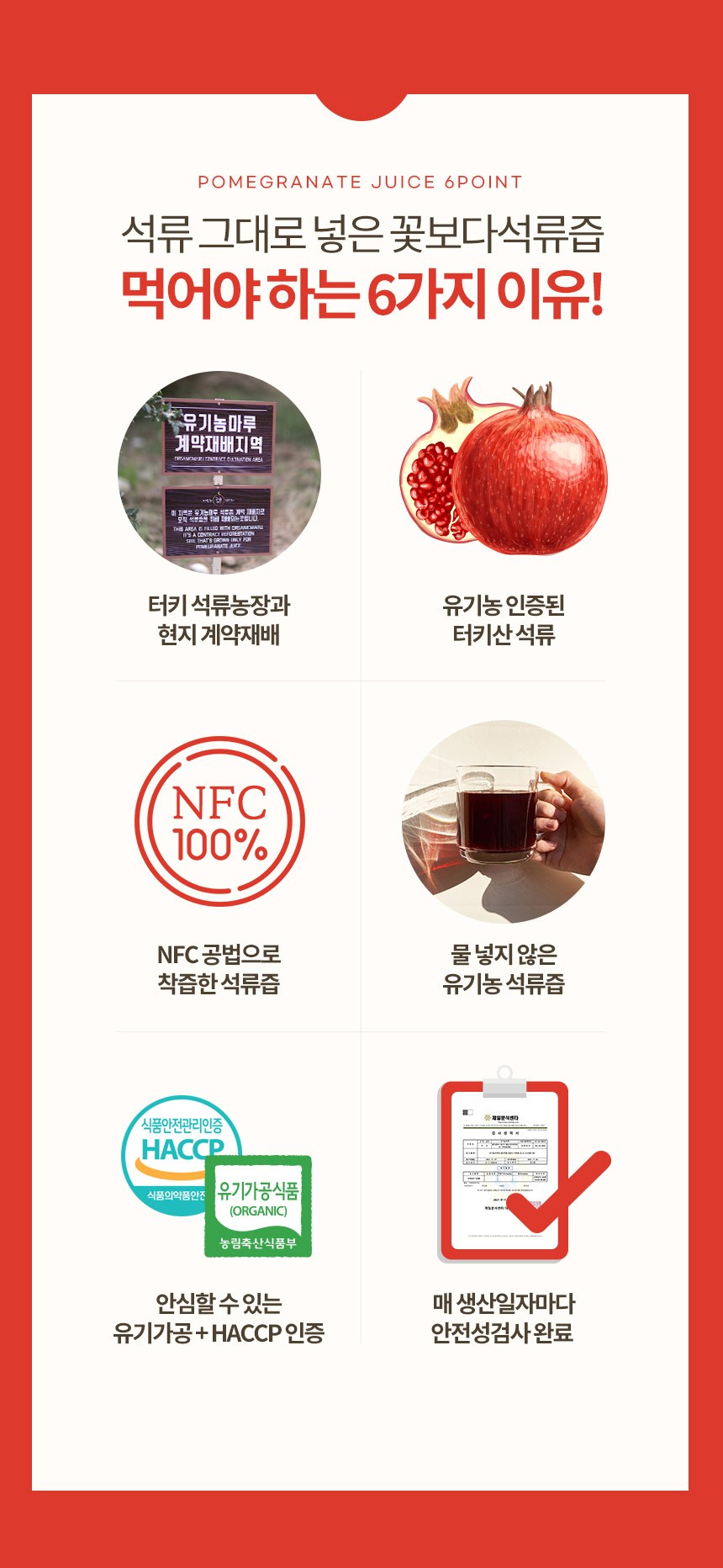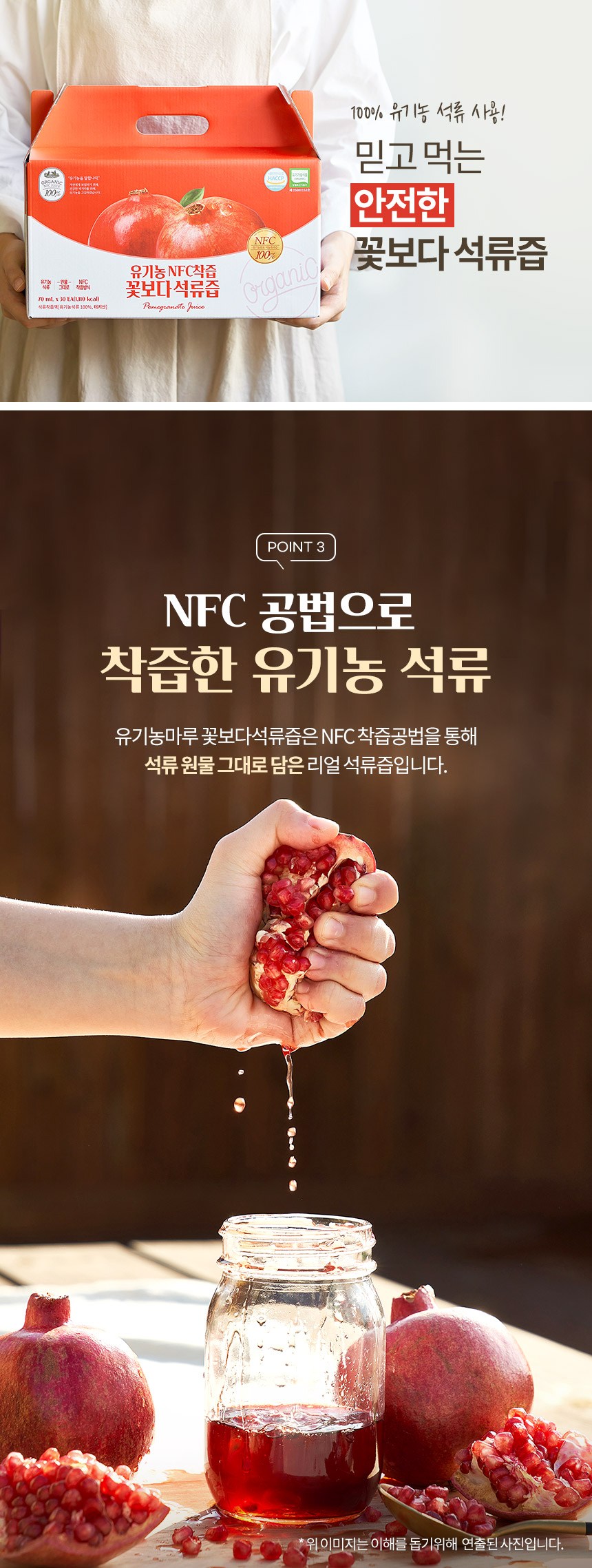 | 제품명 | 유기농 NFC착즙 꽃보다 석류즙 | 식품의 유형 | 과채주스 |