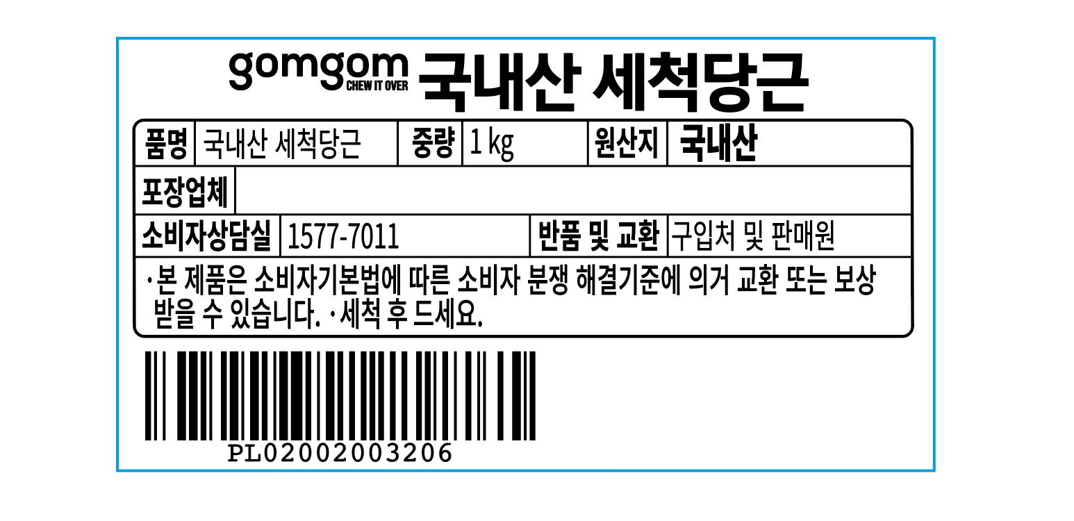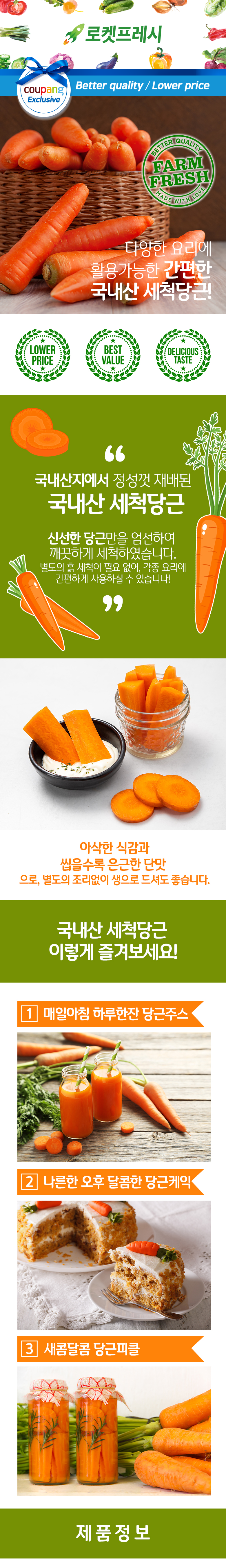 | 품목 또는 명칭 | 국내산 세척당근 | 포장단위별 내용물의 용량(중량),수량,크기 | 1kgx2개 |