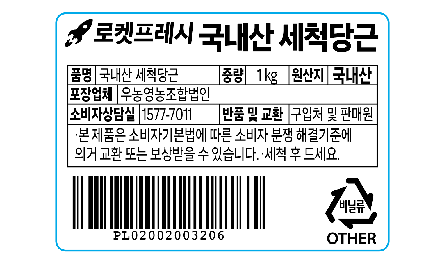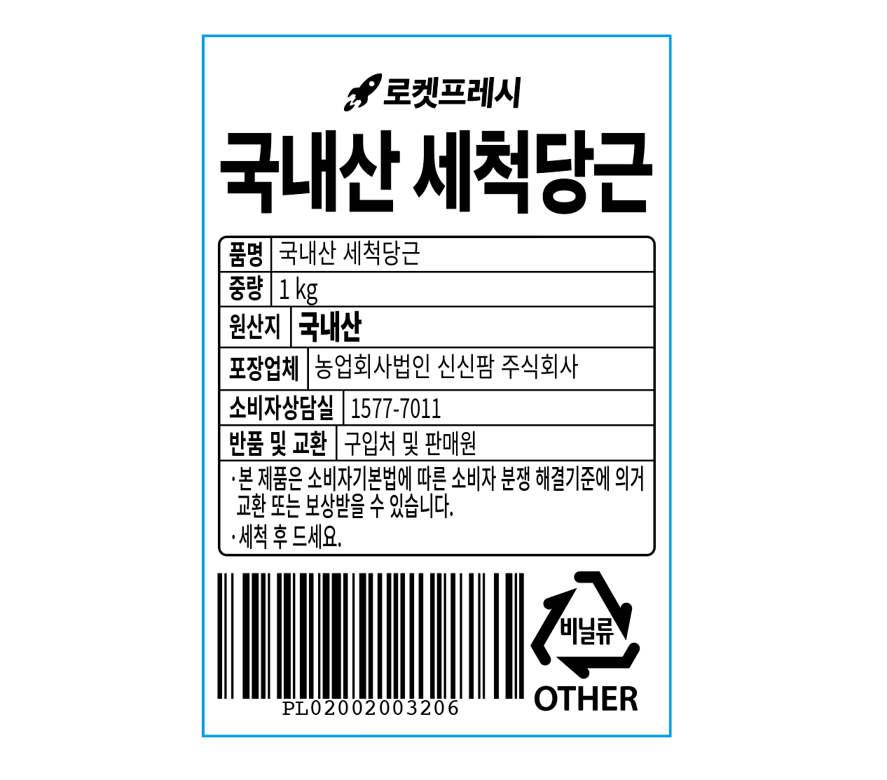 | 배송방법 | 신선/냉장/냉동 | 배송비 | 무료배송 - 로켓프레시 상품 중 15,000원 이상 구매 시 무료배송 - 해당 서비스 가능 지역에 한함 |