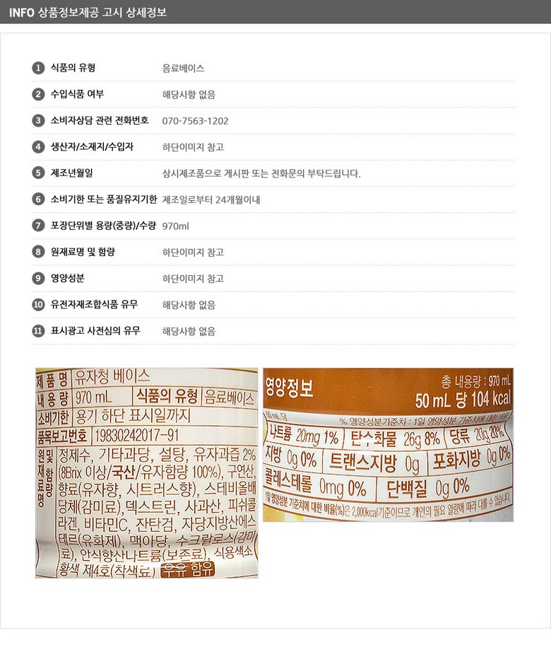 | 생산자 및 소재지 | 상품 상세페이지 참조 | 제조연월일, 소비기한 또는 품질유지기한 | 상품 상세페이지 참조 |