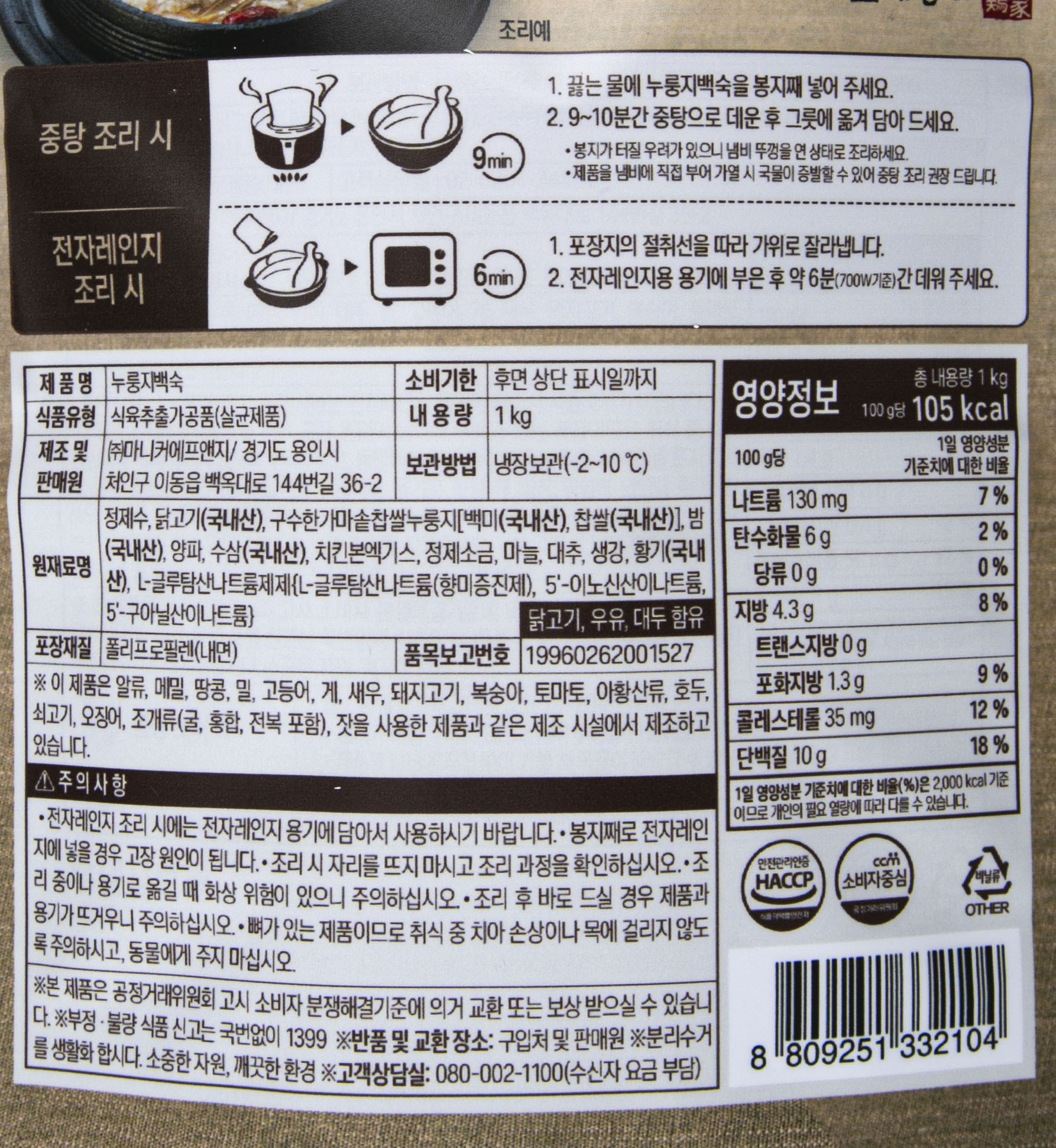 찹쌀 누룽지의 고소한 풍미와 깊은 국물 맛을 품은 누룽지 백숙. 이제 가정에서도 손쉽게 조리해 즐겨보세요. 통통하게 살이 오른 닭고기와 노릇노릇한 찹쌀 누룽지에 구수한 풍미가 쏙쏙 스며들었답니다. 여기에 밤부터 수삼, 대추, 황기 등 다양한 재료가 깊은 맛을 더해주죠.