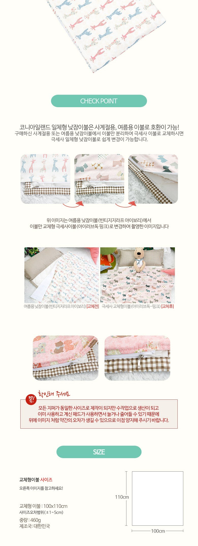 | 크기 | 이불(100x110cm) | 중량 | 465g |