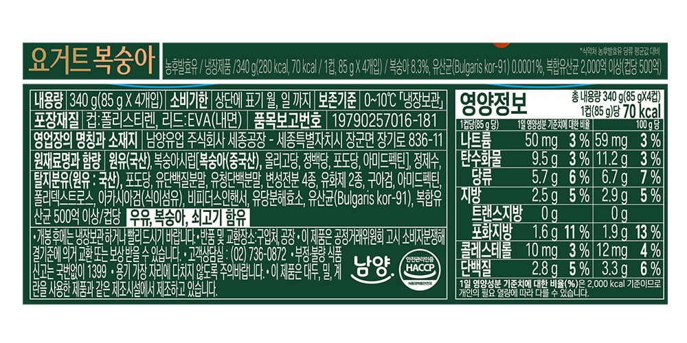| 제품명 | 떠먹는 불가리스 복숭아 | 식품의 유형 | 컨텐츠참조 |