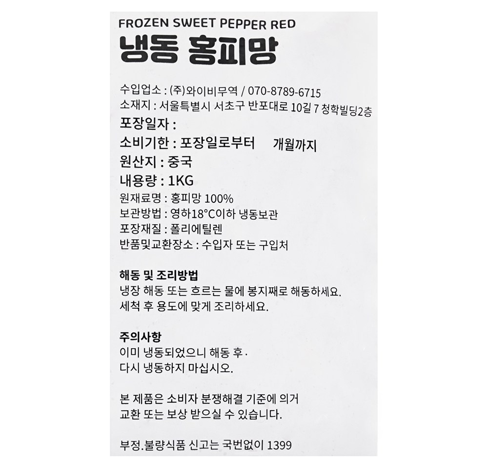 요리하기 좋게 손질한 홍피망이에요. 적당한 길이와 두께로 슬라이스했죠. 아삭한 식감과 특유의 달달한 풍미가 그대로 살아있답니다. 해동 및 세척 후, 다양하게 요리해보세요. 각종 볶음 요리에 넣어도 맛있고요. 샐러드, 파스타 등에 활용하셔도 좋아요.