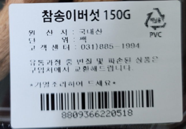 | 품목 또는 명칭 | 참송이버섯 150G | 포장단위별 내용물의 용량(중량),수량,크기 | 150g x 4개,1개 |