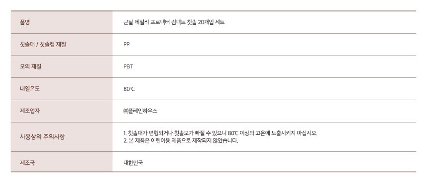 | 품명 및 모델명 | 데일리 프로텍터 컴팩트 칫솔 세트 | 인증/허가 사항 | 해당없음 |