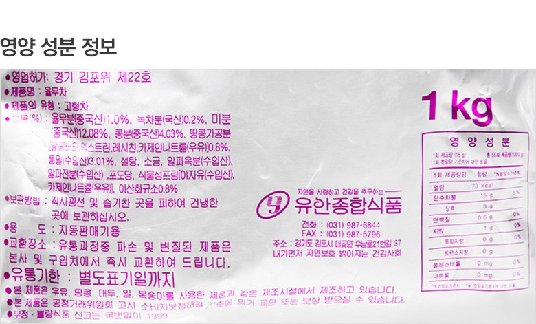 | 제품명 | 유안 율무차 | 식품의 유형 | 컨텐츠 참조 |