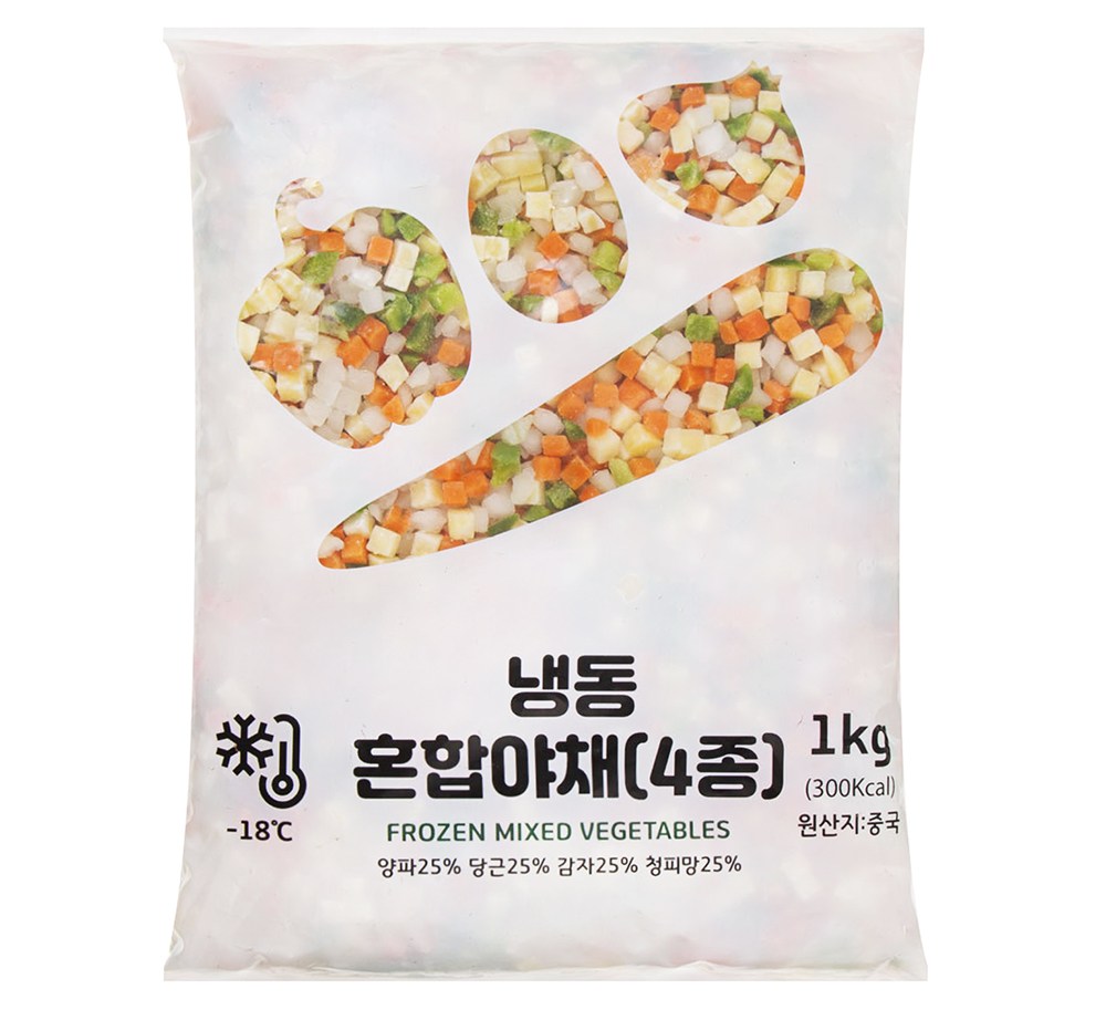 요리에 활용하기 좋은 크기로 손질되어 한결 간편한 냉동 혼합 야채를 만나보세요. 양파, 당근, 감자, 청피망으로 구성해 다채로운 맛과 식감을 즐기실 수 있지요. 볶음밥이나 수프, 커리 등에 다양하게 활용해 보세요.