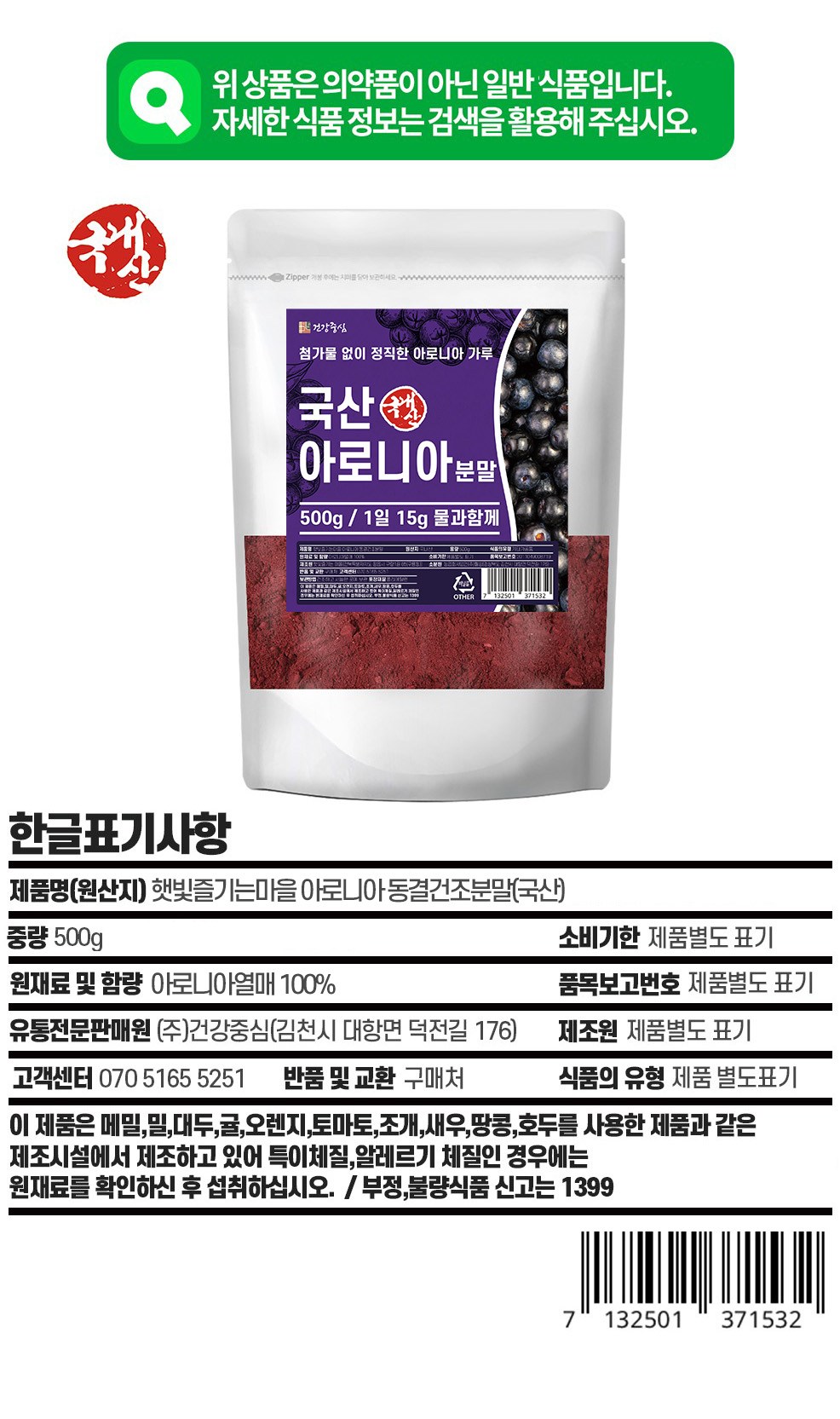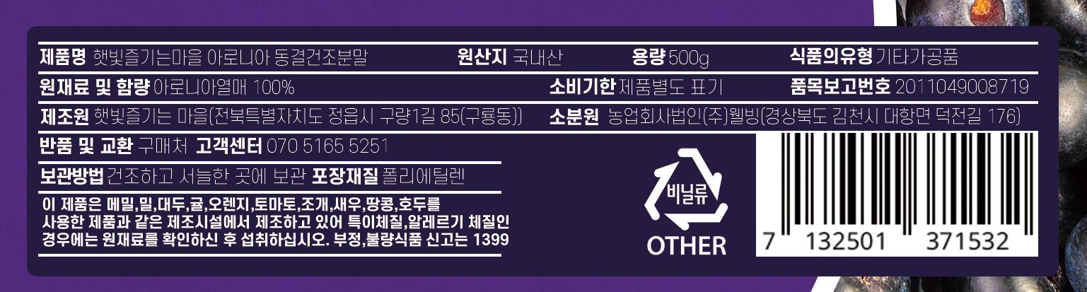 | 포장단위별 내용물의 용량(중량), 수량 | 500g x 2개 | 원재료명 및 함량 | 컨텐츠 참조 |