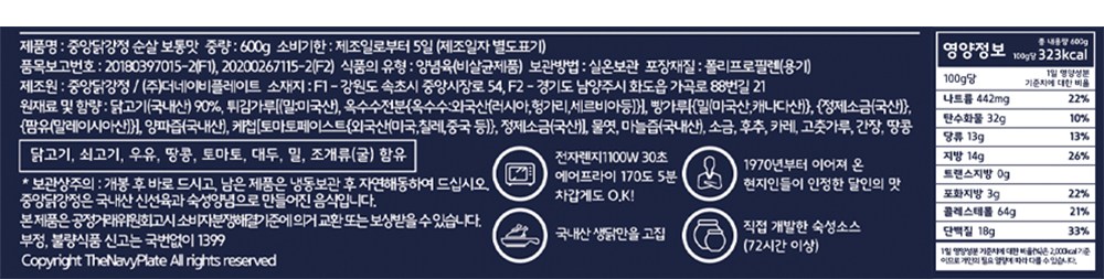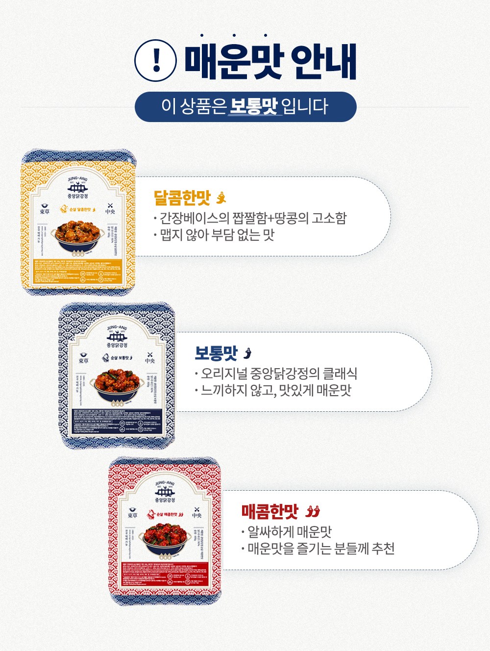 | 제품명 | 중앙닭강정 순살 보통맛 | 식품의 유형 | 양념육(비살균제품) |