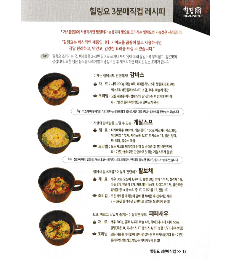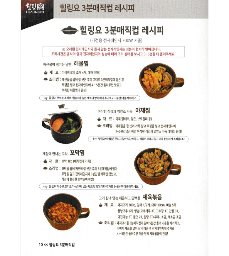 | 품명 및 모델명 | 힐링요 건강조리기 3종세트(매직컵+22L+미니조리기) | 재질 | 도자기 |