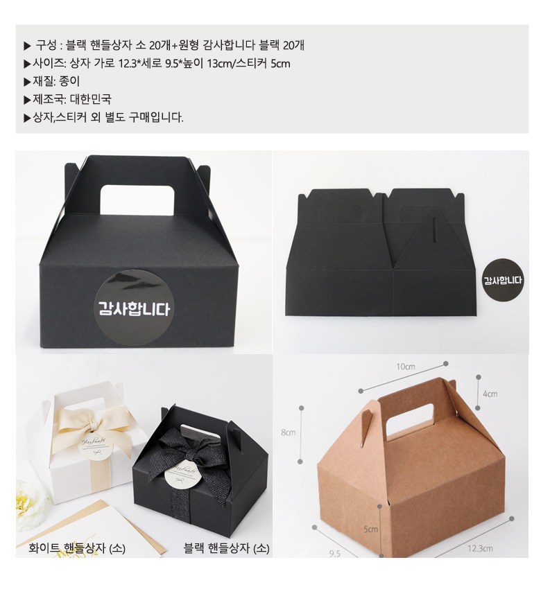 | 품명 및 모델명 | 블랙핸들상자소 +원형 감사합니다 블랙 | 재질 | 종이 |
