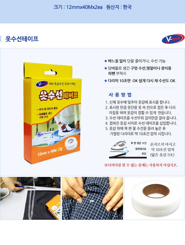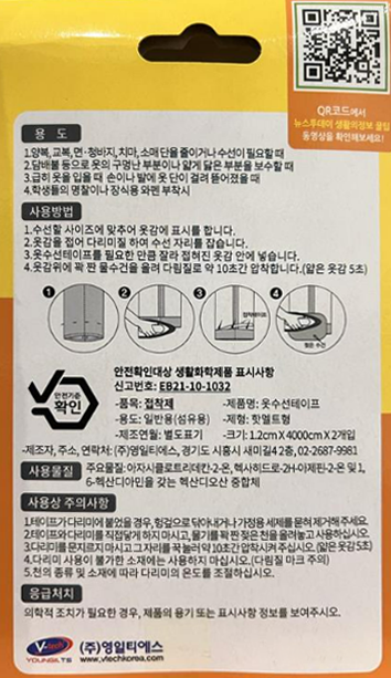 - 옷감에 부착 후 다림질 한 번이면 사용 가능