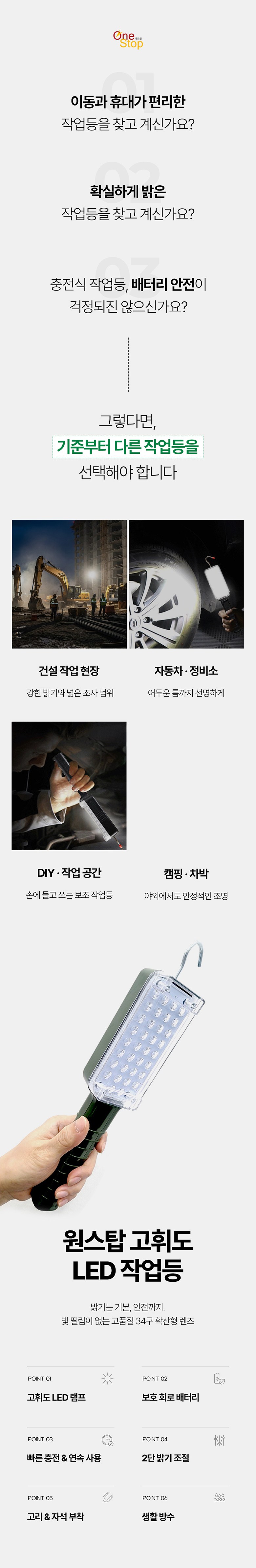 원스탑 다용도 LED 충전 34구 자석 C타입 작업등