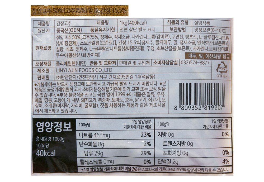 절임고추 사용