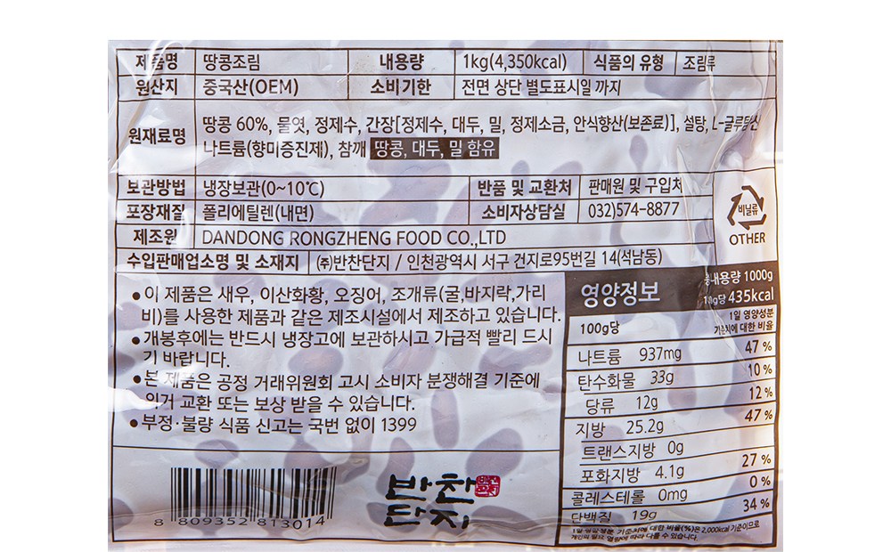 | 제품명 | 땅콩조림 | 식품의 유형 | 컨텐츠 참조 |