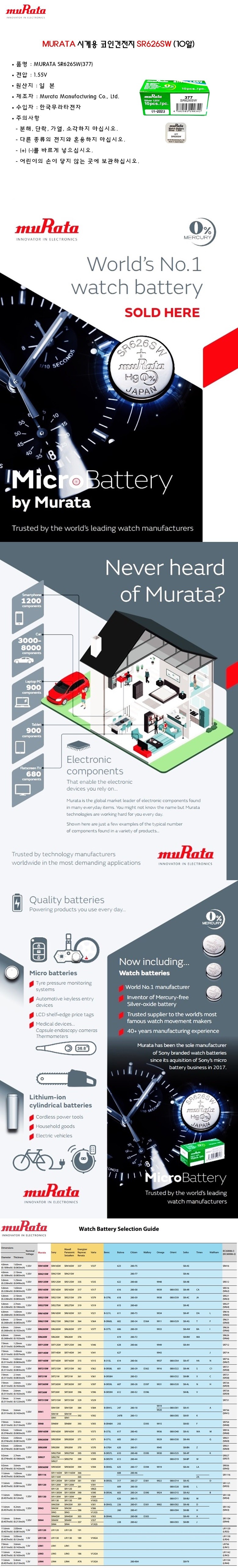 | 품명 및 모델명 | 무라타 시계건전지 SR626SW | 인증/허가 사항 | 해당없음 |