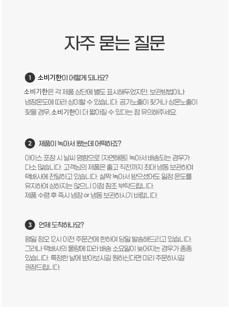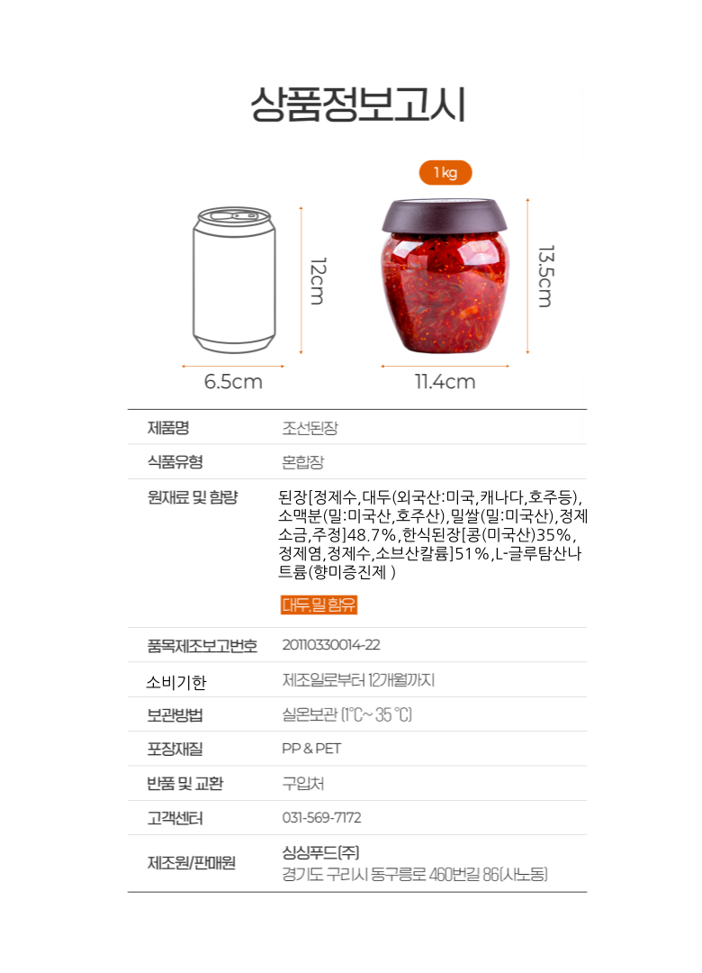 | 생산자 및 소재지 | 상품 상세페이지 참조 | 제조연월일, 소비기한 또는 품질유지기한 | 상품 상세페이지 참조 |