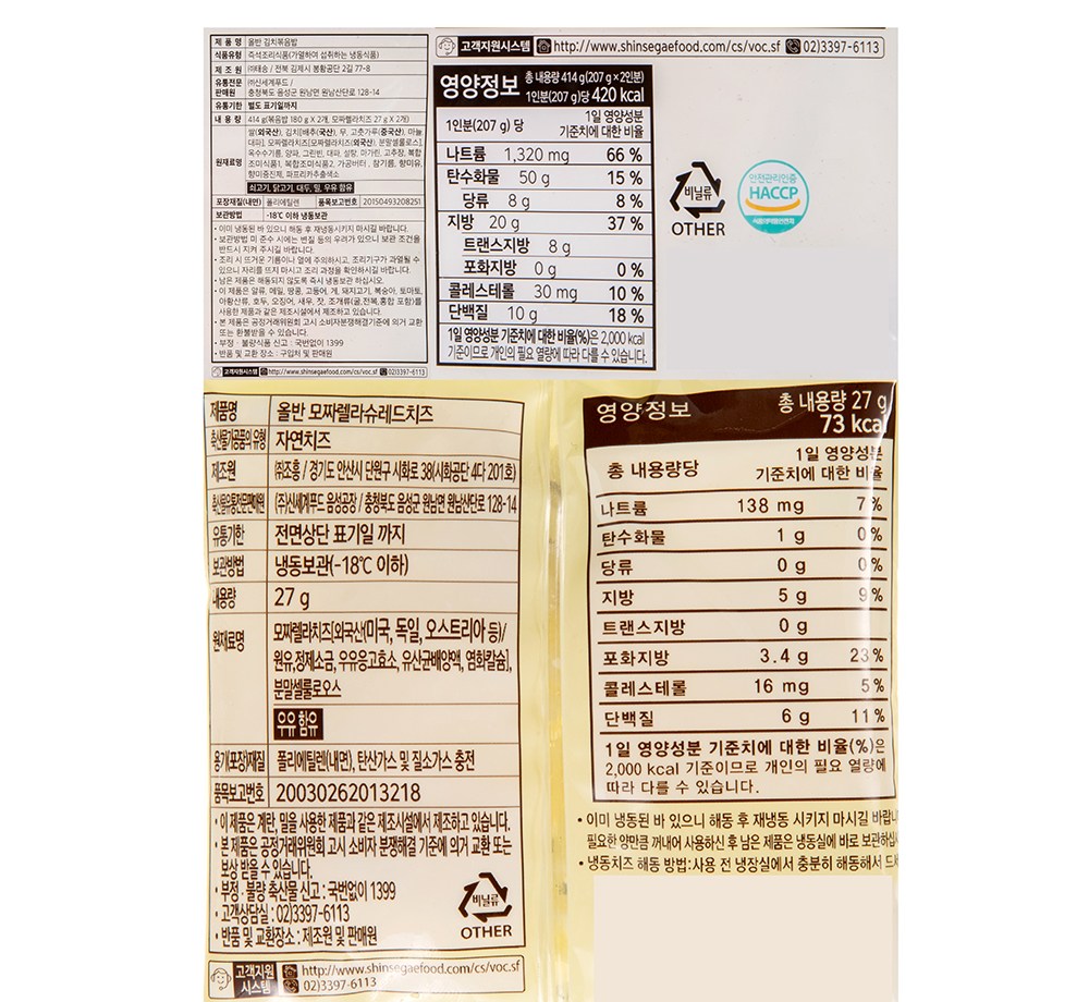 | 포장단위별 내용물의 용량(중량), 수량 | 414g x 2개 | 원재료명 및 함량 | 컨텐츠 참조 |