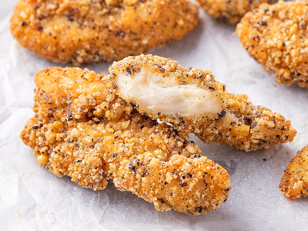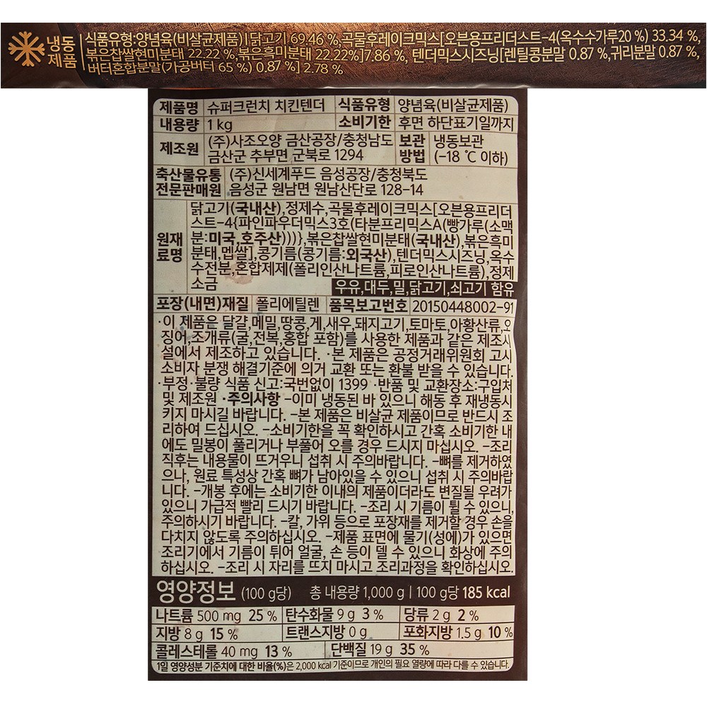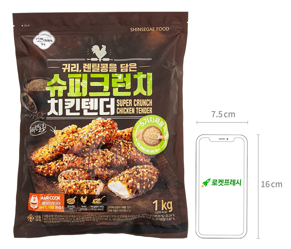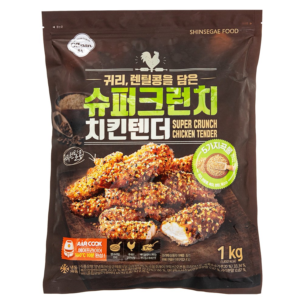 뼈 없이 간편하게 즐기는 슈퍼크런치 치킨텐더를 소개할게요. 곡물후레이크믹스를 넣고 튀겨, 고소함이 배가되었는데요. 노릇하게 튀긴 후 한 번 구워내, 기름기를 줄이고 담백한 맛을 살렸답니다. 에어프라이어로도 조리할 수 있으니, 간편하게 준비해 밥반찬이나 간식으로 즐겨보세요.