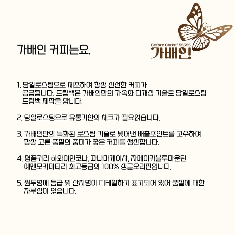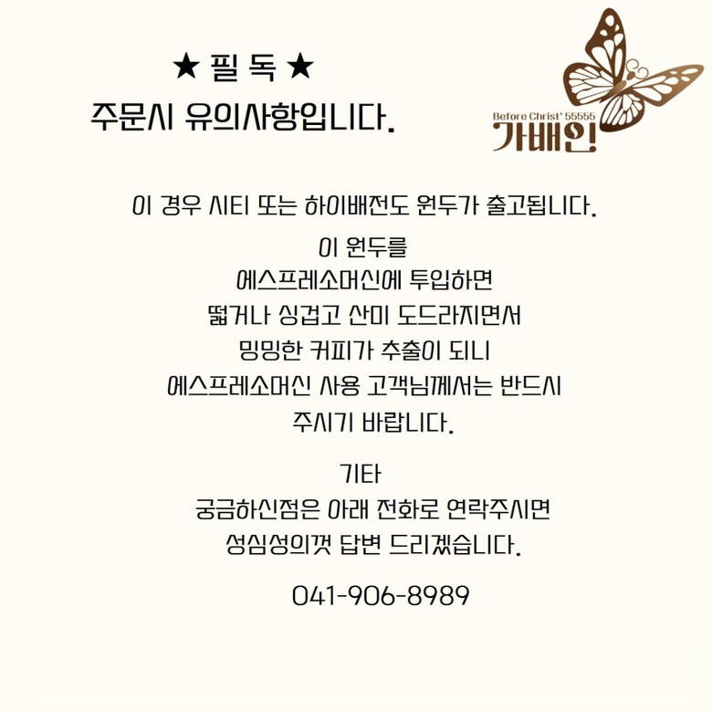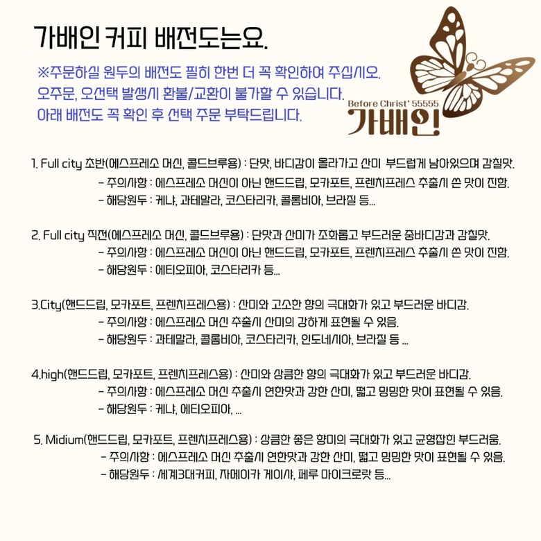 | 제품명 | 상품 상세페이지 참조 | 식품의 유형 | 원두커피 |
