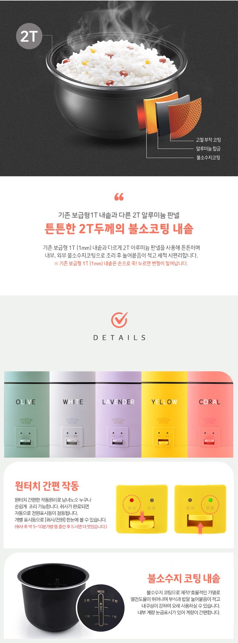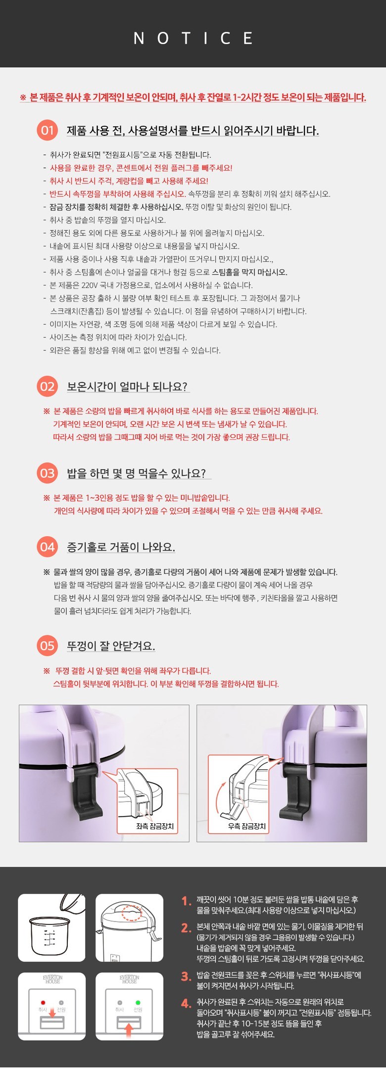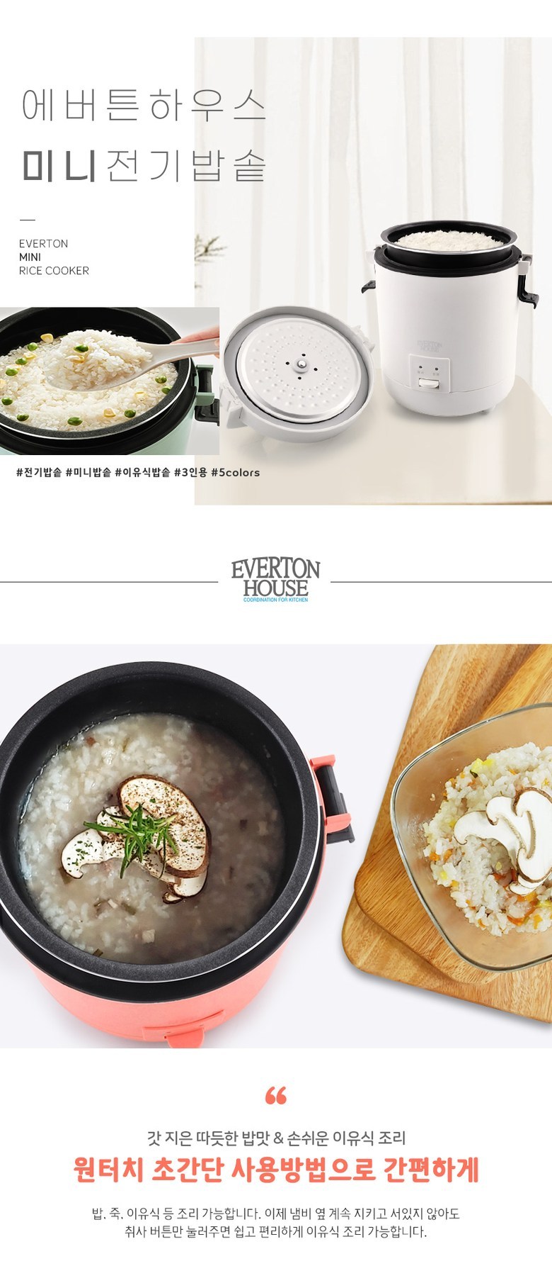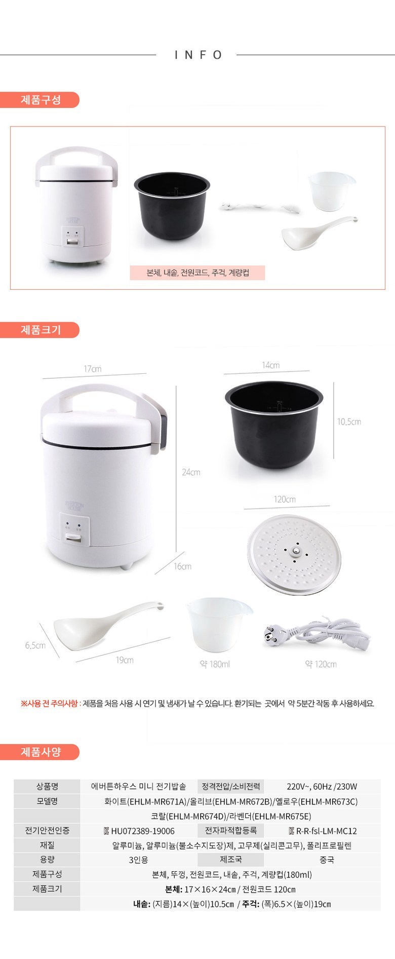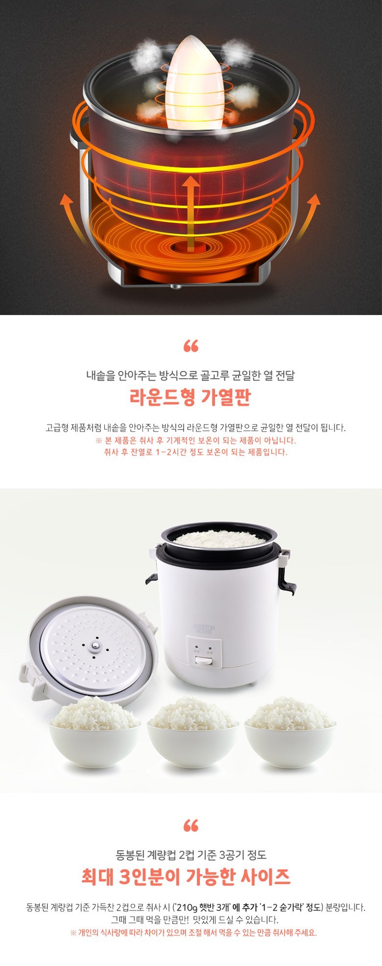 - 전기밥솥 용량: 3인용 이하