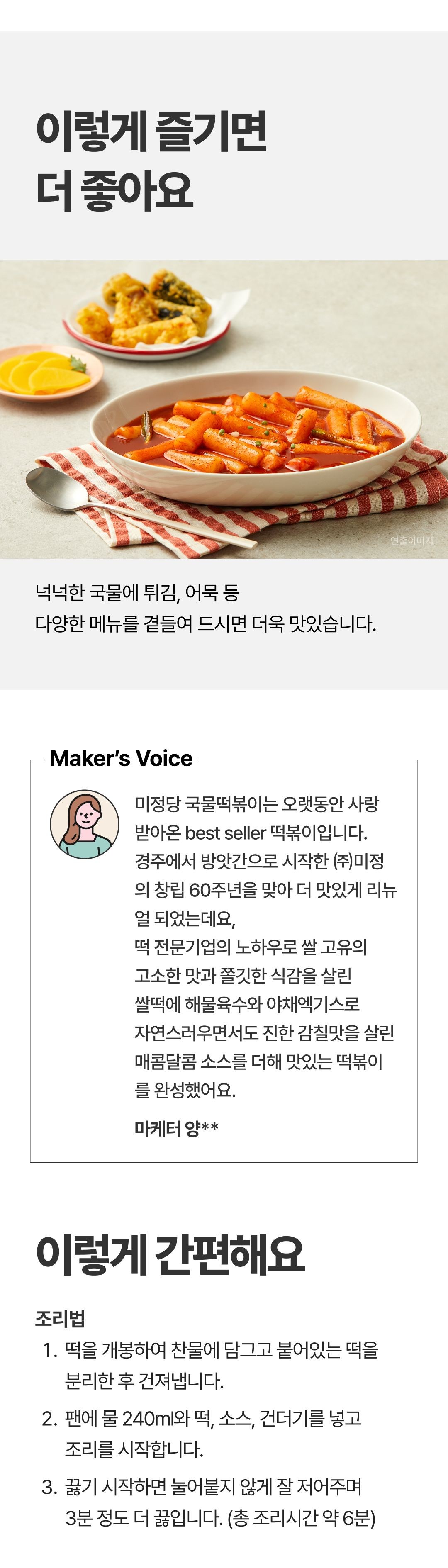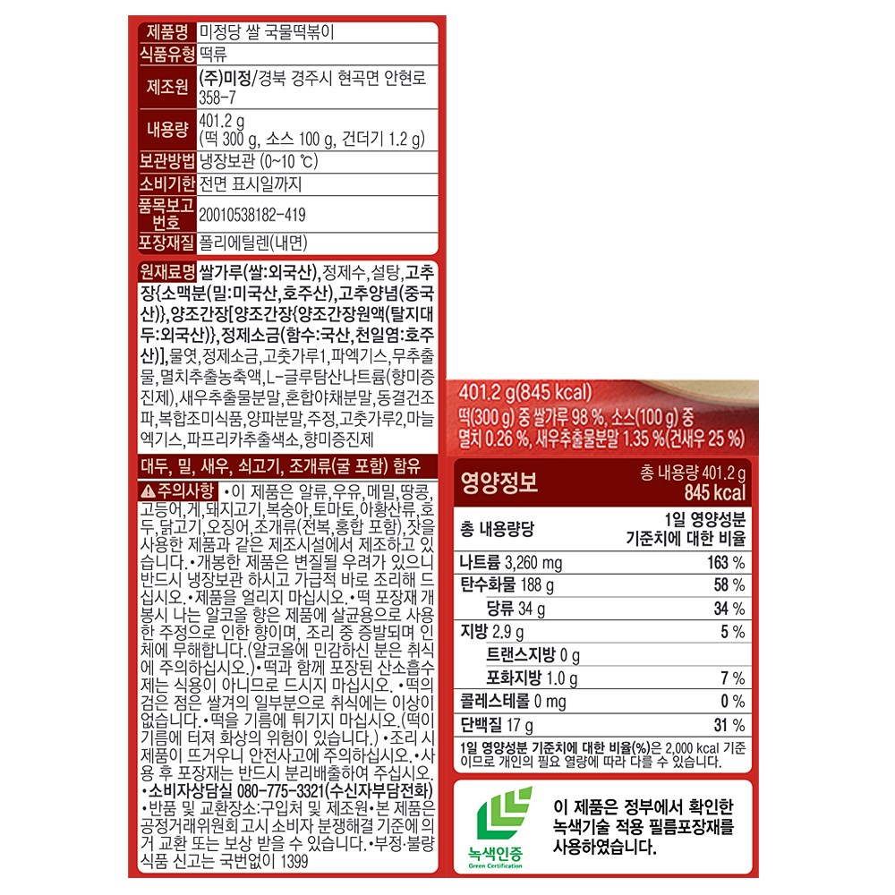 | 제품명 | 미정당 쌀 국물떡볶이 | 식품의 유형 | 컨텐츠 참조 |