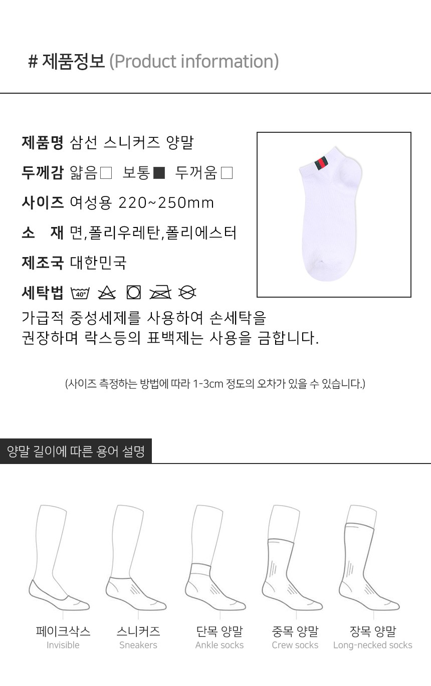 | 종류 | 양말 | 소재 | 면30%, 폴리에스터65%, 폴리우레탄5% |