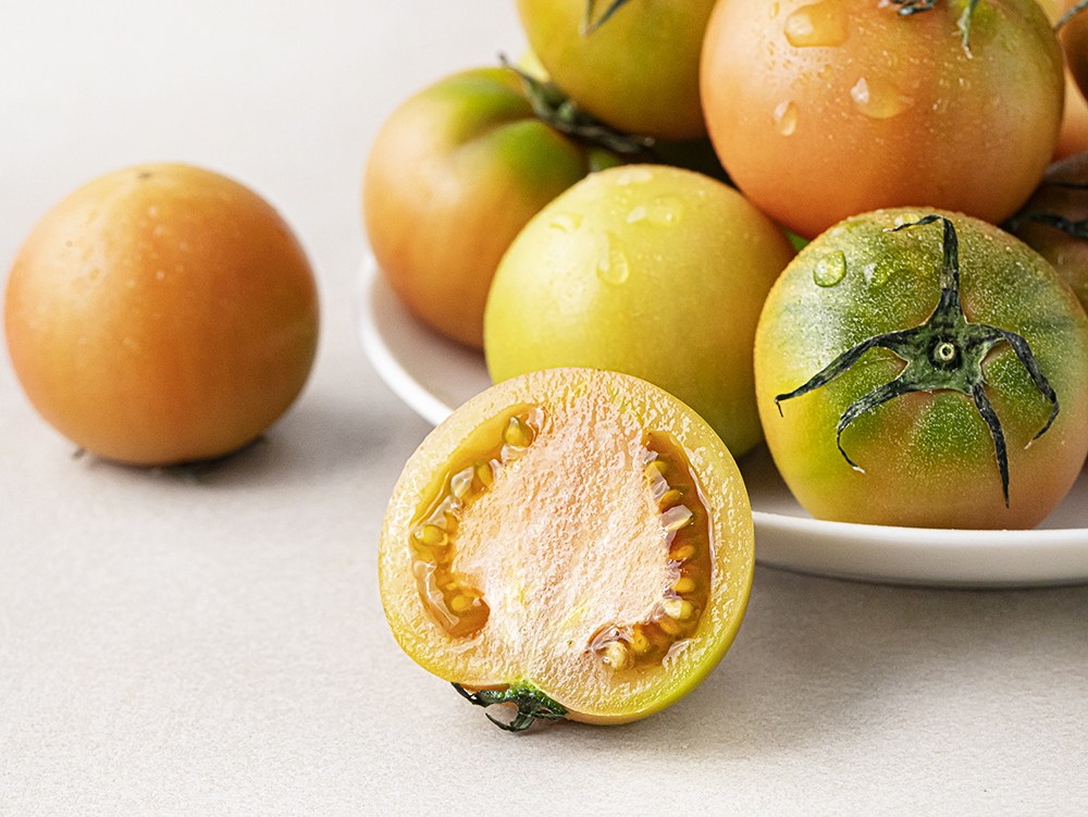 은은한 초록빛이 감도는 대저 토마토예요. 전문 경매사가 선별해 품질이 우수하고 신선한 상품으로 만나보세요. 단단하면서도 촉촉한 과육의 탱글탱글한 식감과 달콤한 풍미가 일품이죠. 생과 그대로 드셔도 맛있고, 샐러드, 샌드위치 등 다양한 요리에 활용하셔도 좋답니다.