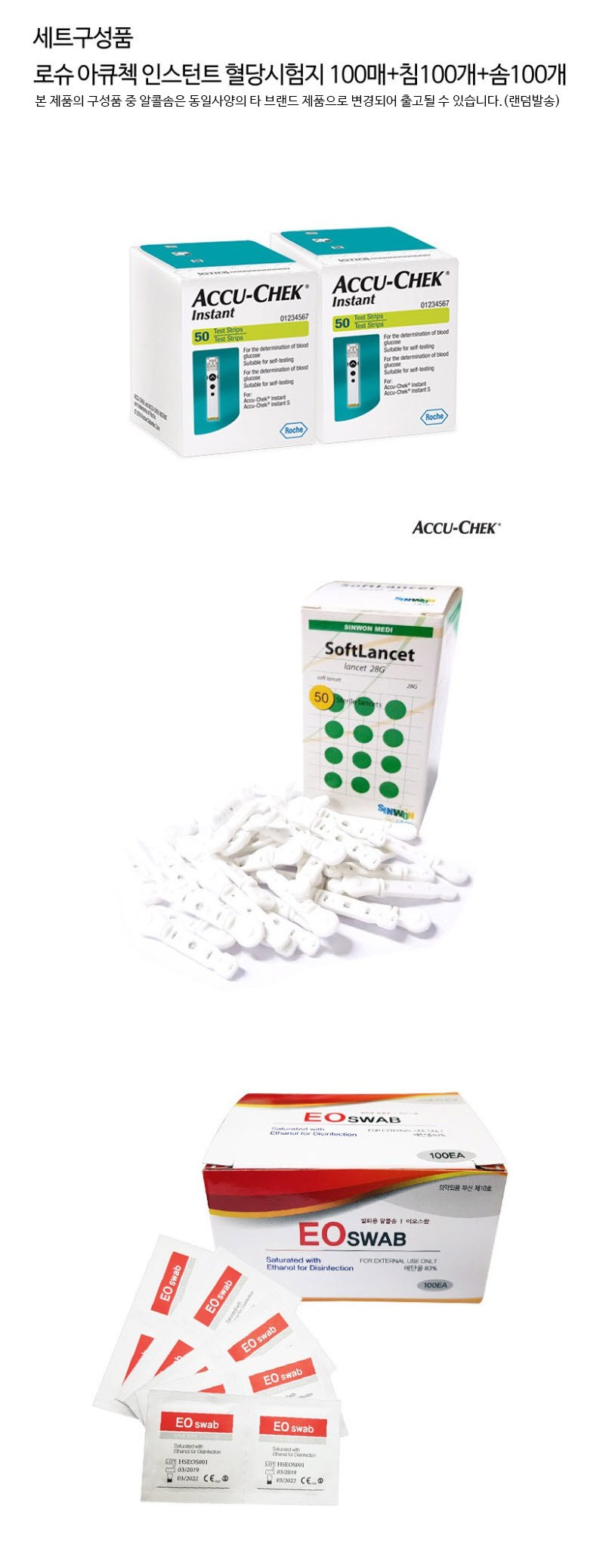 | 제조자(수입자) | 혈당시험지 : Roche Diabetes Care, Inc./한국로슈진단(주), 채혈침 : Tianjin Huahong Technology Co.,Ltd./신원메디 | 제조국 | 혈당시험지 : 미국, 채혈침 : 중국 |