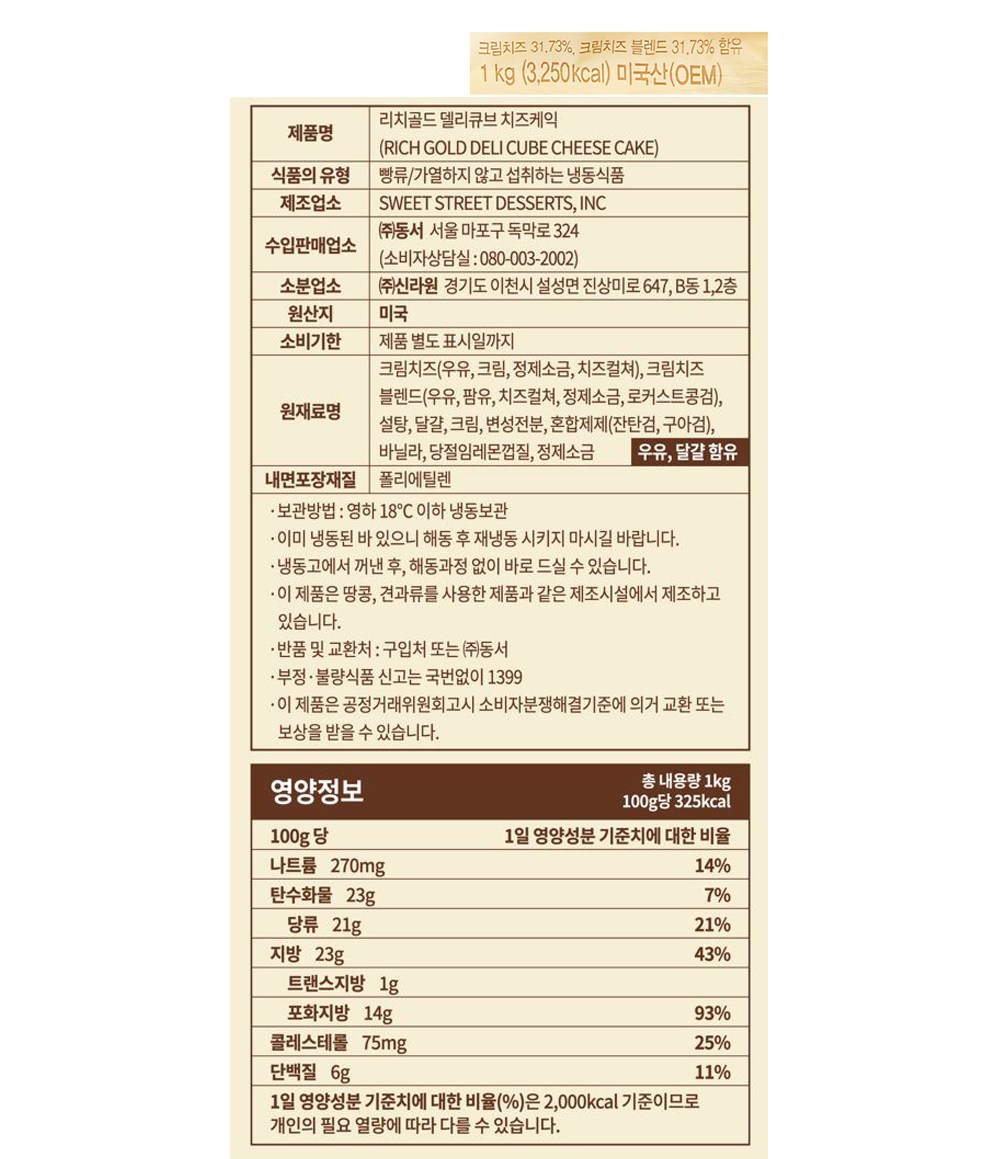 리치골드 델리큐브 치즈케익