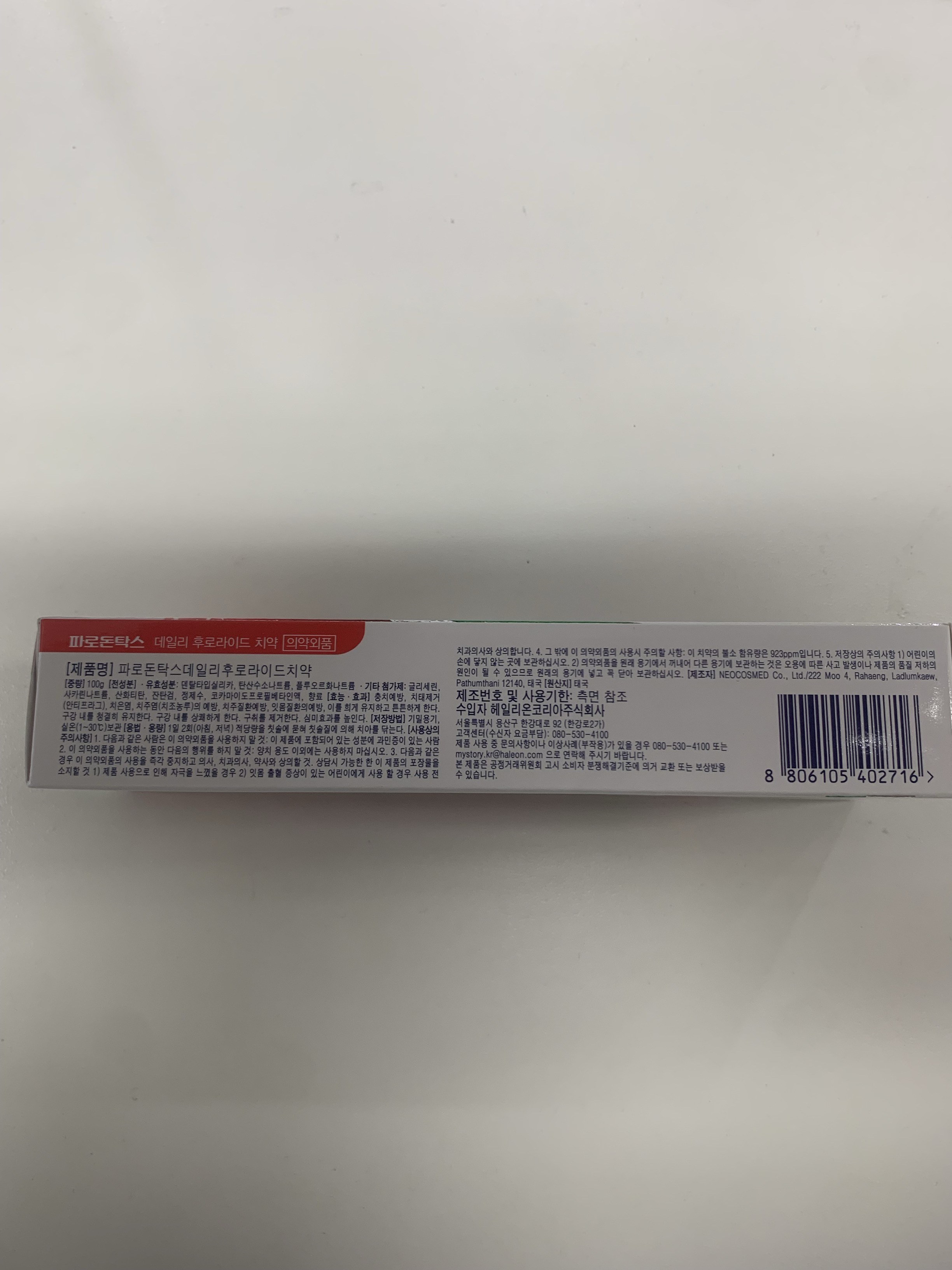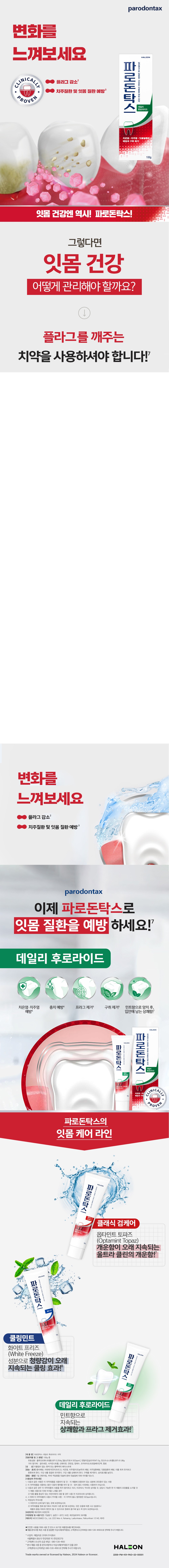 | 품명 및 모델명 | 파로돈탁스 데일리 후로라이드 치약 | 인증/허가 사항 | 의약외품 |