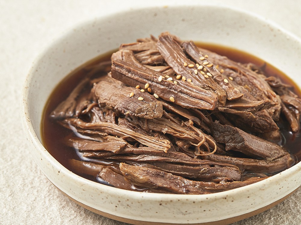 조리 없이 바로 드실 수 있는 소고기 장조림입니다. 담백하면서도 풍성한 맛을 전하지요. 짭조름하면서도 달착지근한 풍미를 느낄 수 있어요. 식탁에 올려 정갈하고 든든한 식사를 준비해보세요.