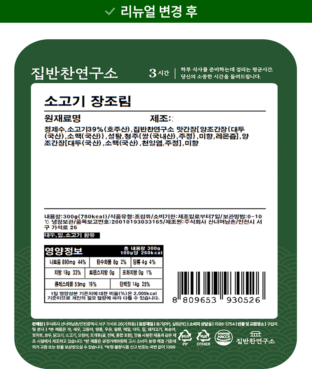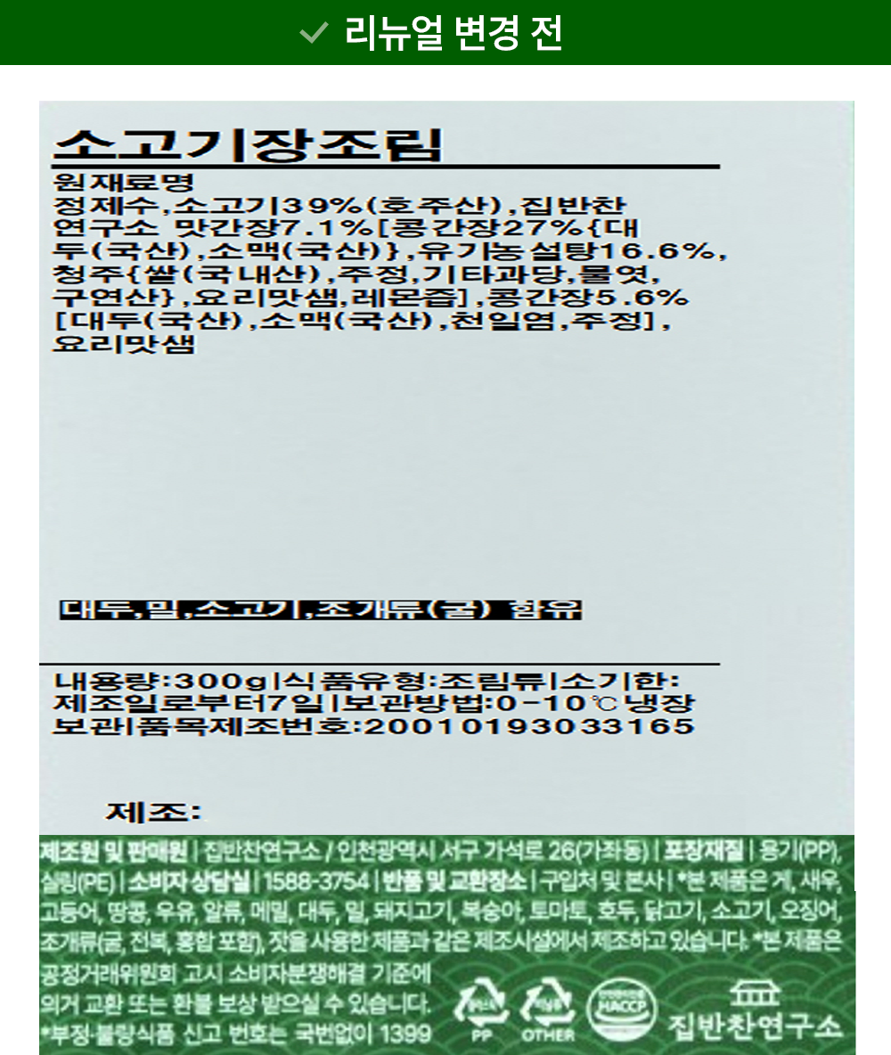 | 제품명 | 소고기장조림 | 식품의 유형 | 컨텐츠 참조 |