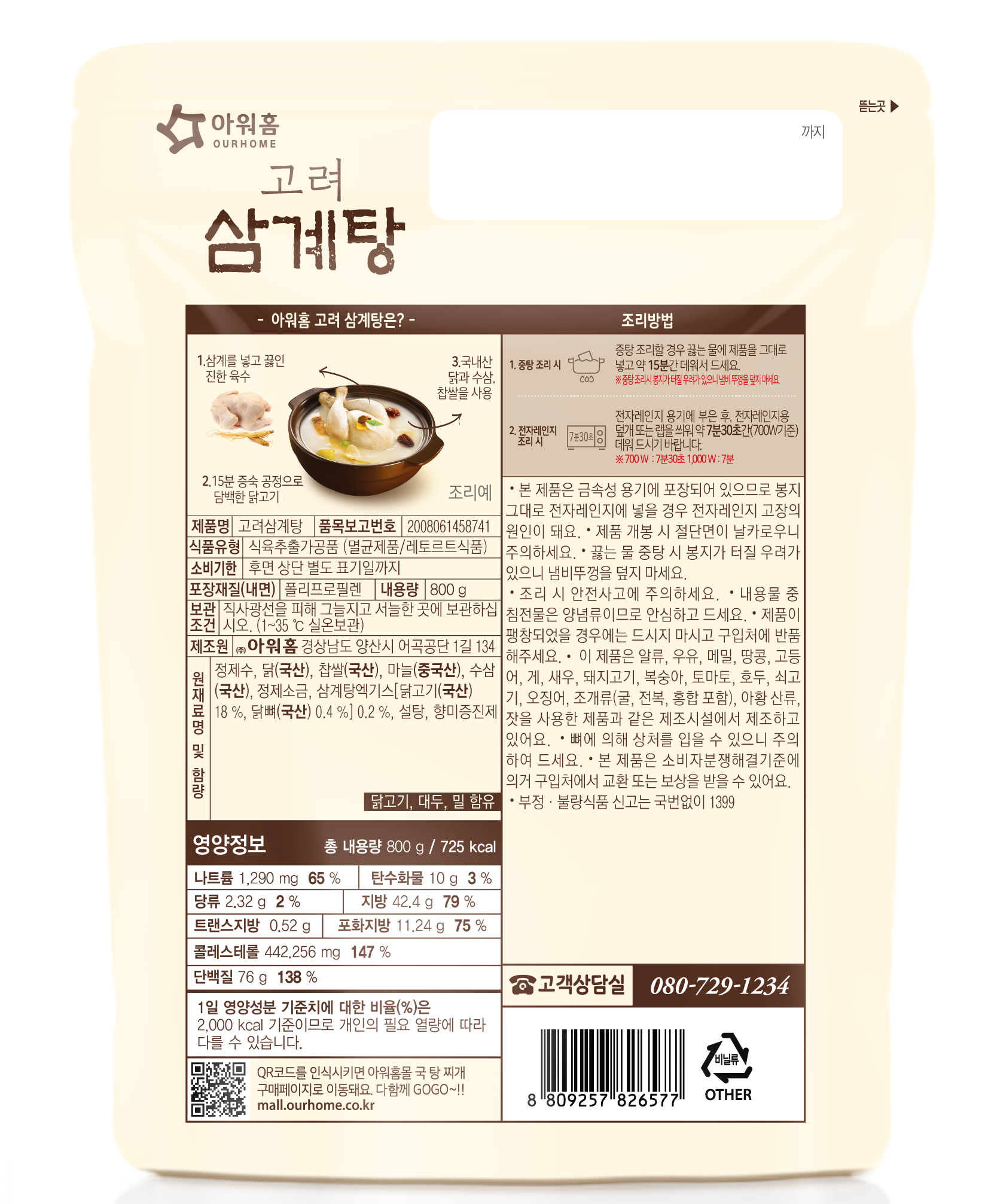 - 섭취방법: 즉석완조리식품