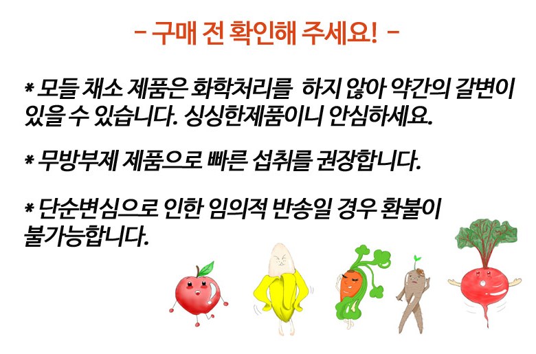 - ㆍ모니터 해상도의 차이로 인해 색상이나 이미지가 실제와 달라, 고객이 단순 변심으로 교환/반품을 무료로 요청하는 경우