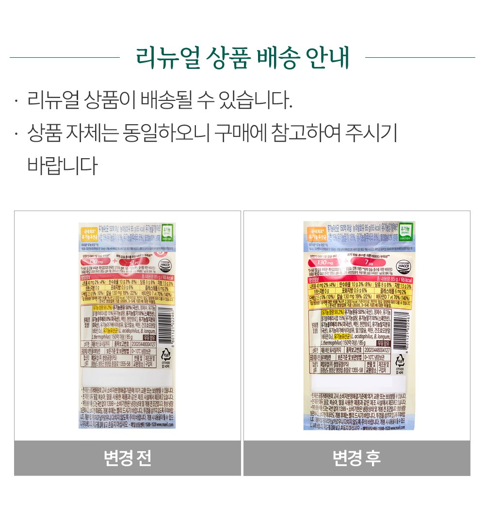 1팩당 유기농 유산균 150억 이상 함유