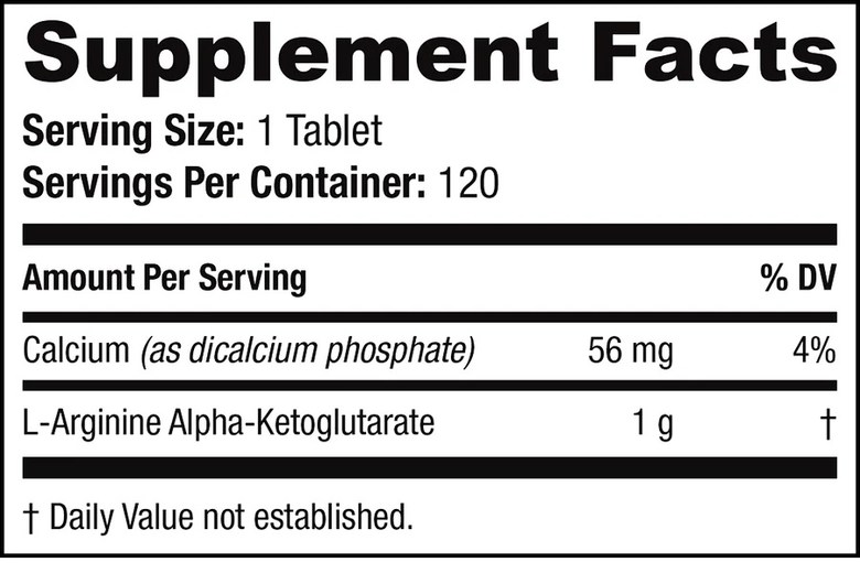 2개의 아르기닌 분자와 1개의 알파 케토글루타르산염 분자가 붙어 산화 질소 부스터처럼 작용하는 식이 보충제입니다.