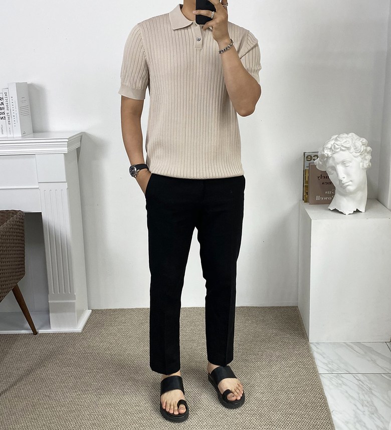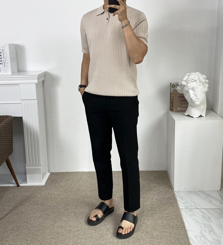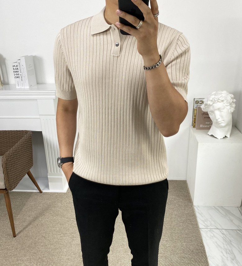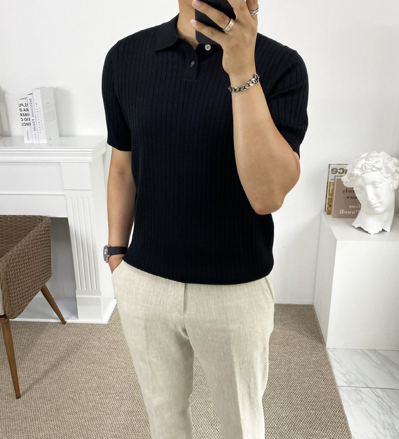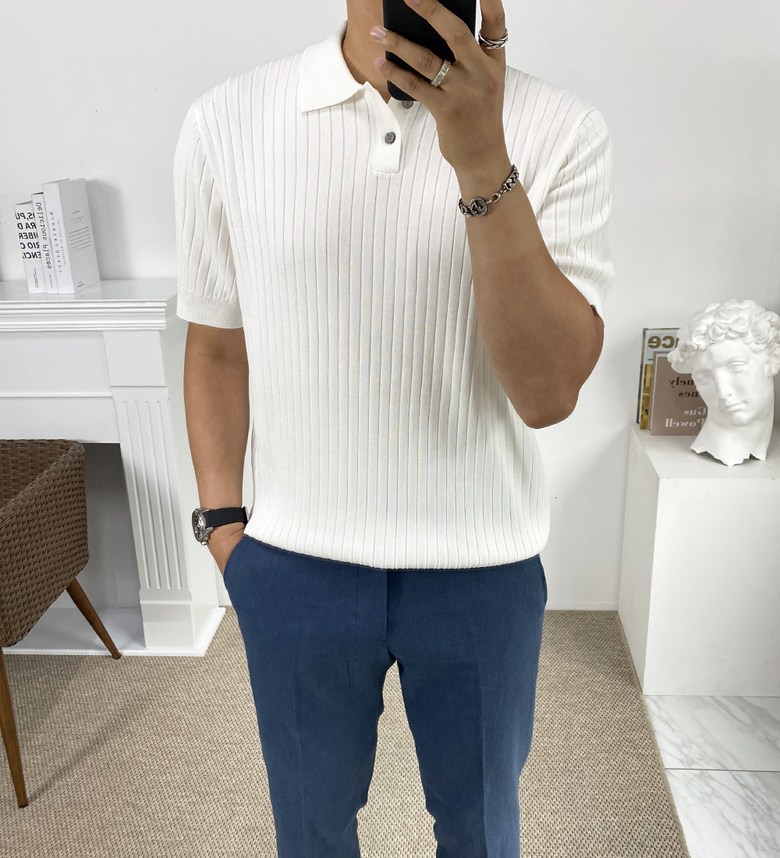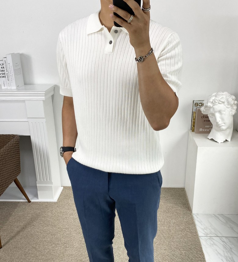 카라 반팔 니트 티셔츠입니다
