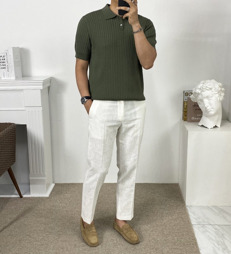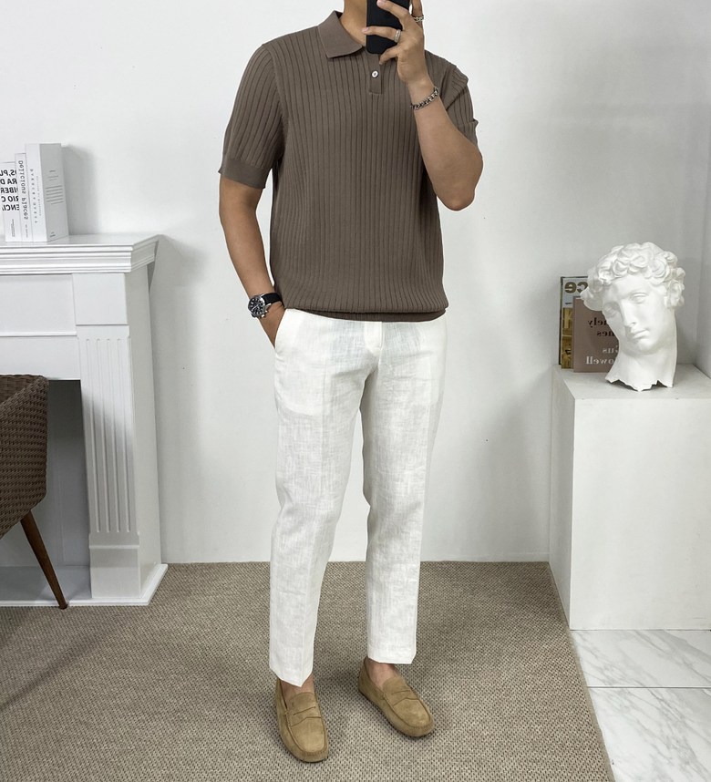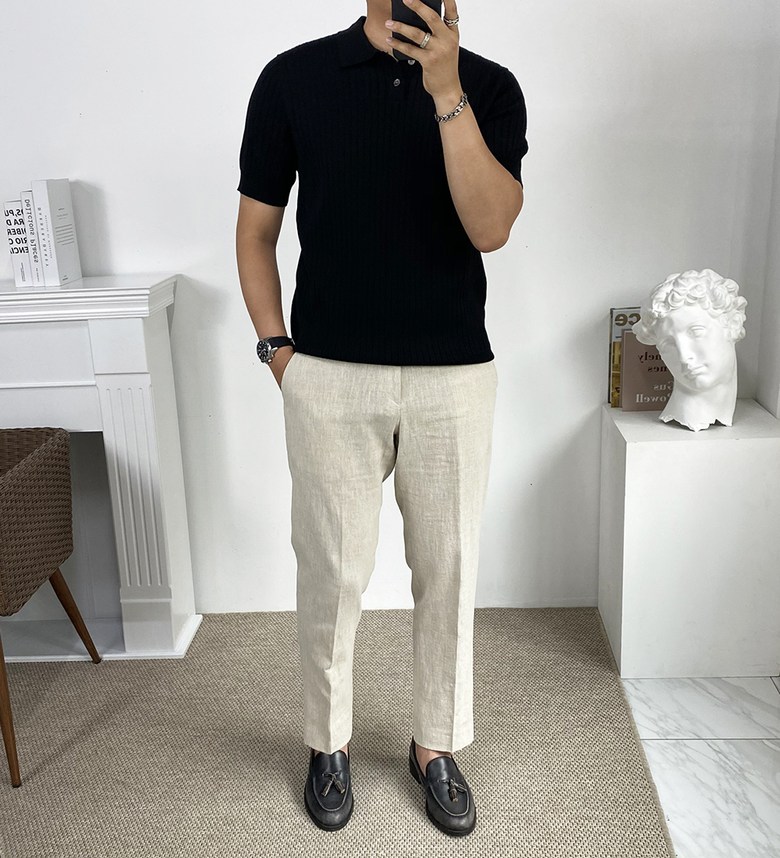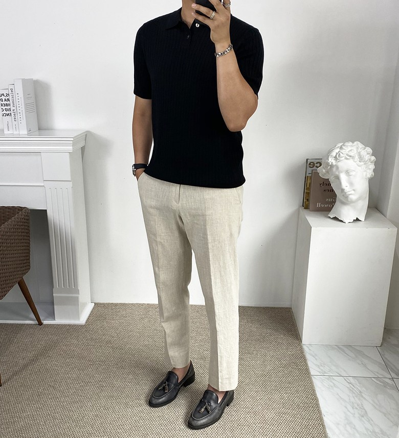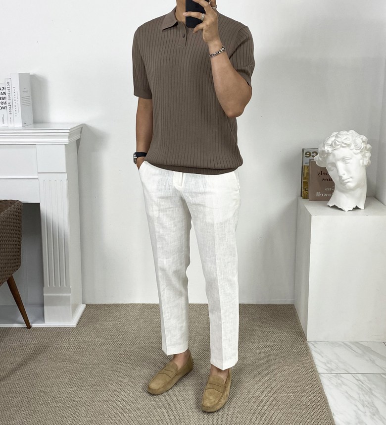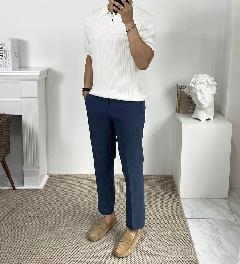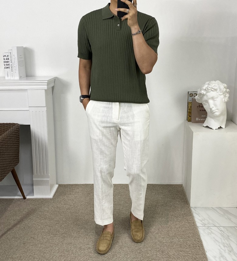 카라 반팔 니트 티셔츠입니다