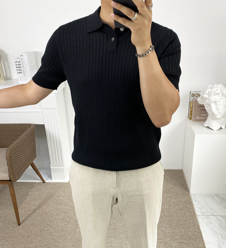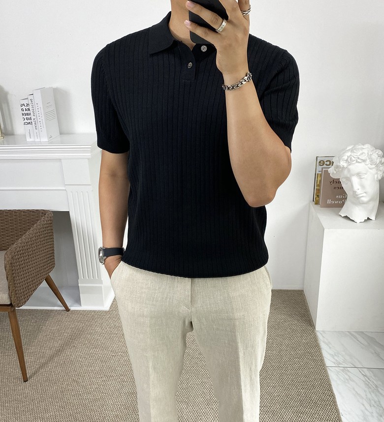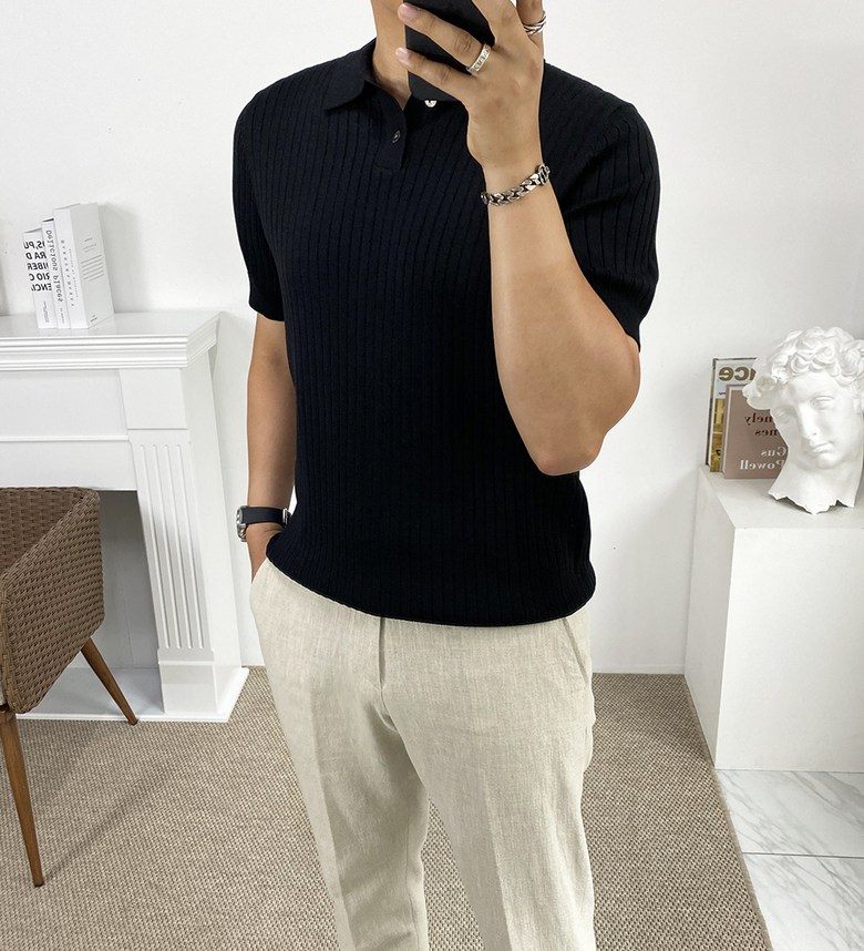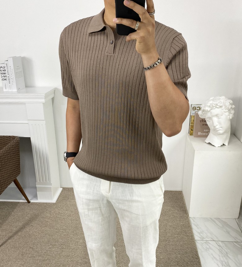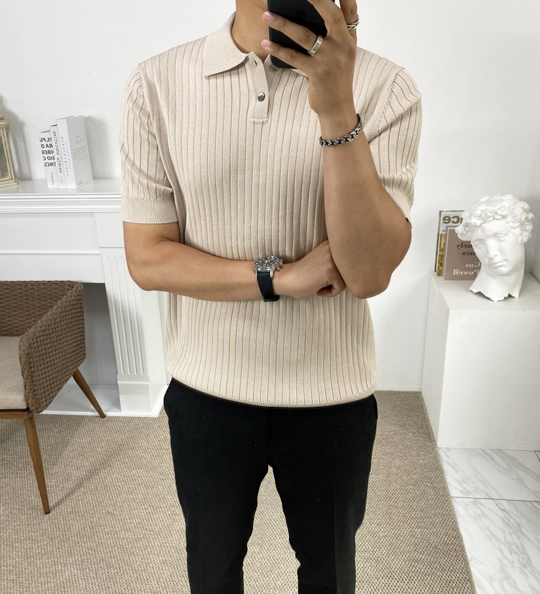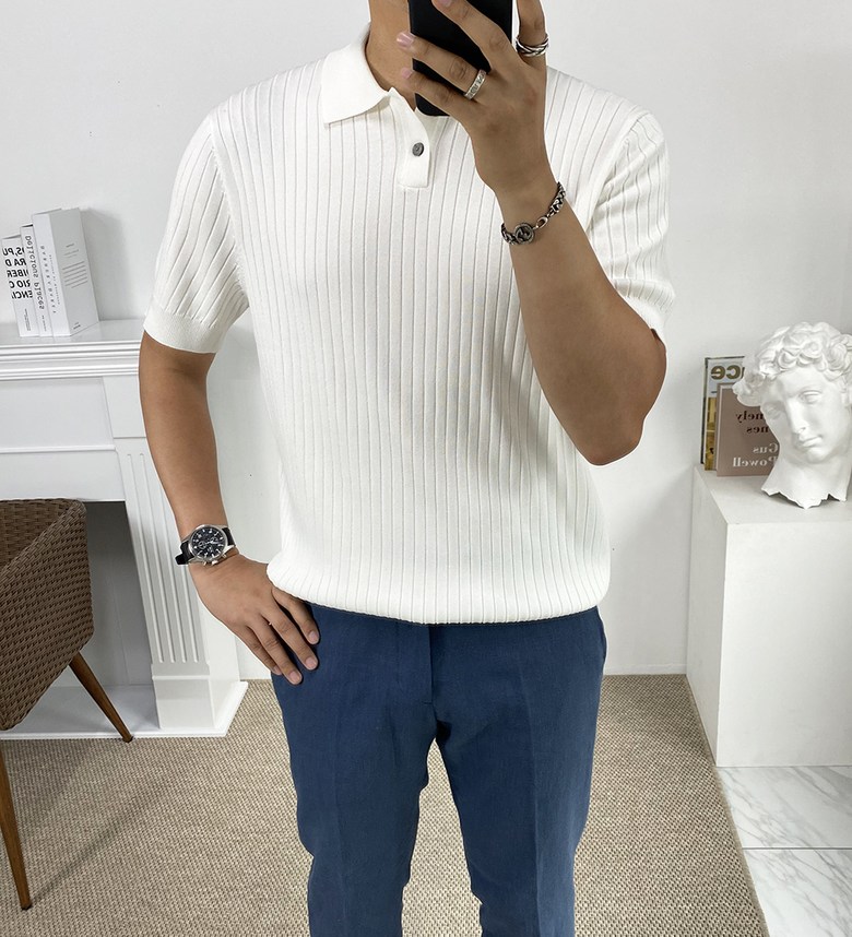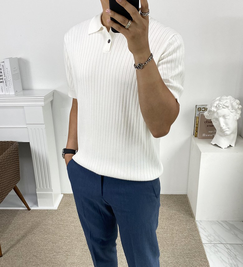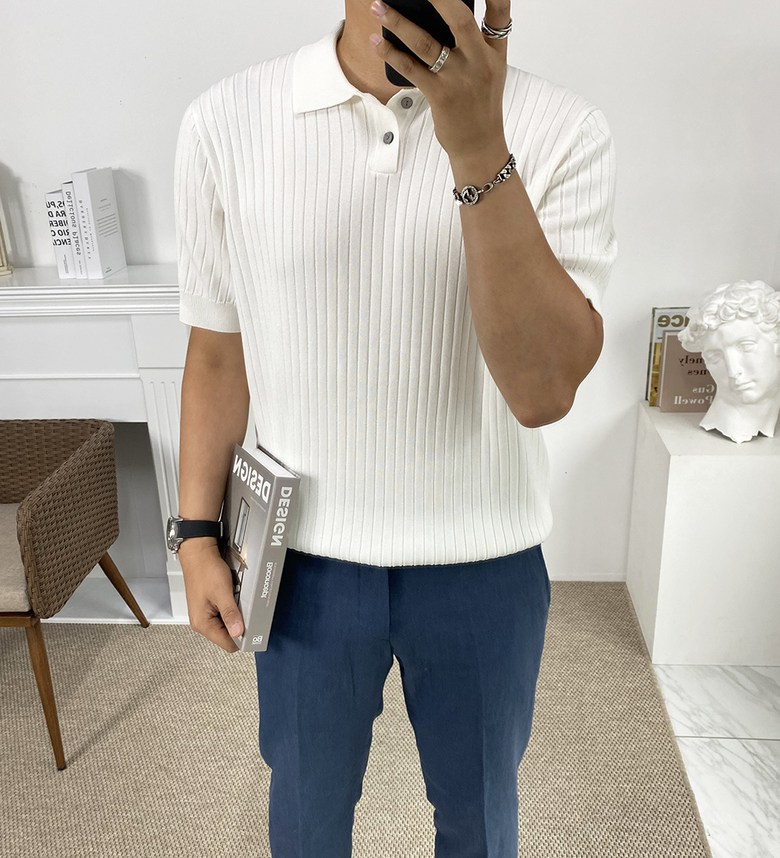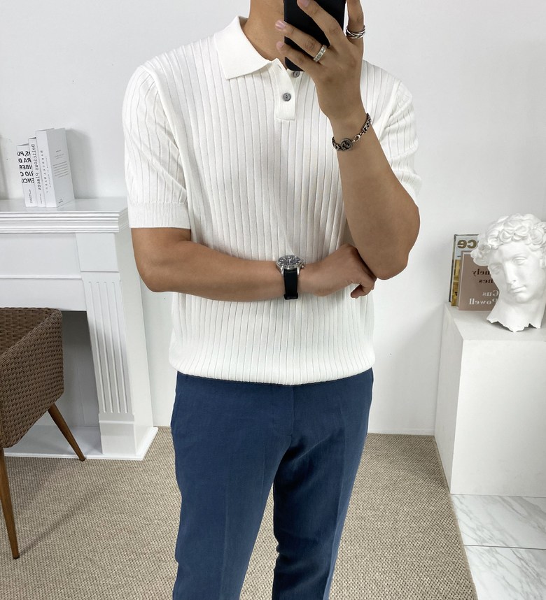 남자 여름 퀸트 카라 반팔 니트 티셔츠